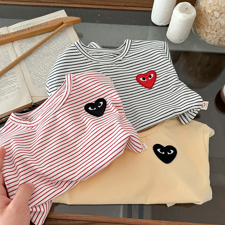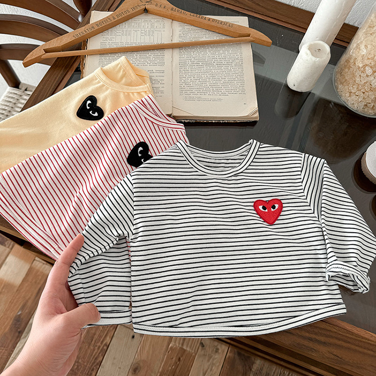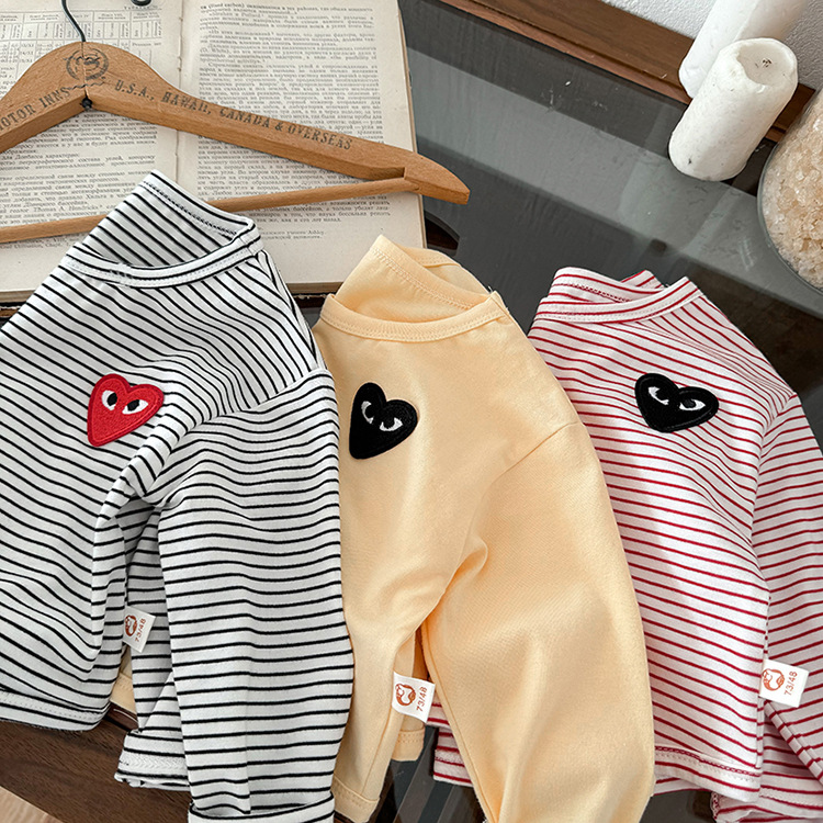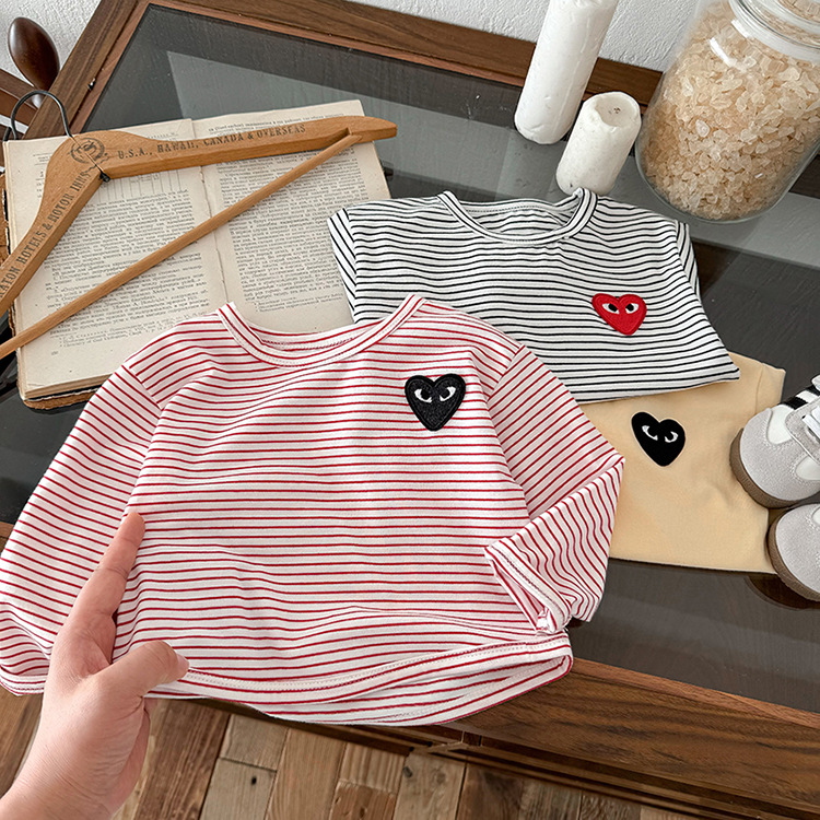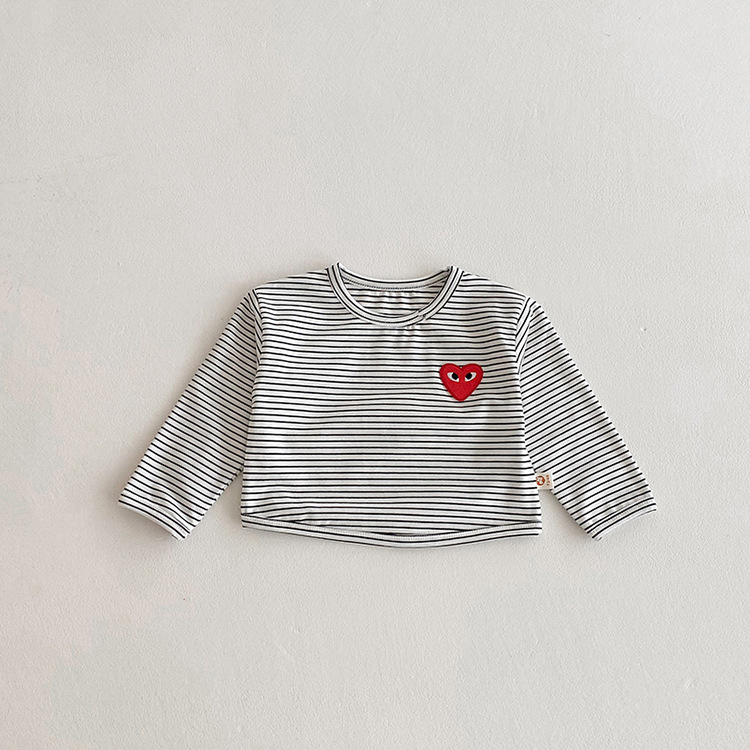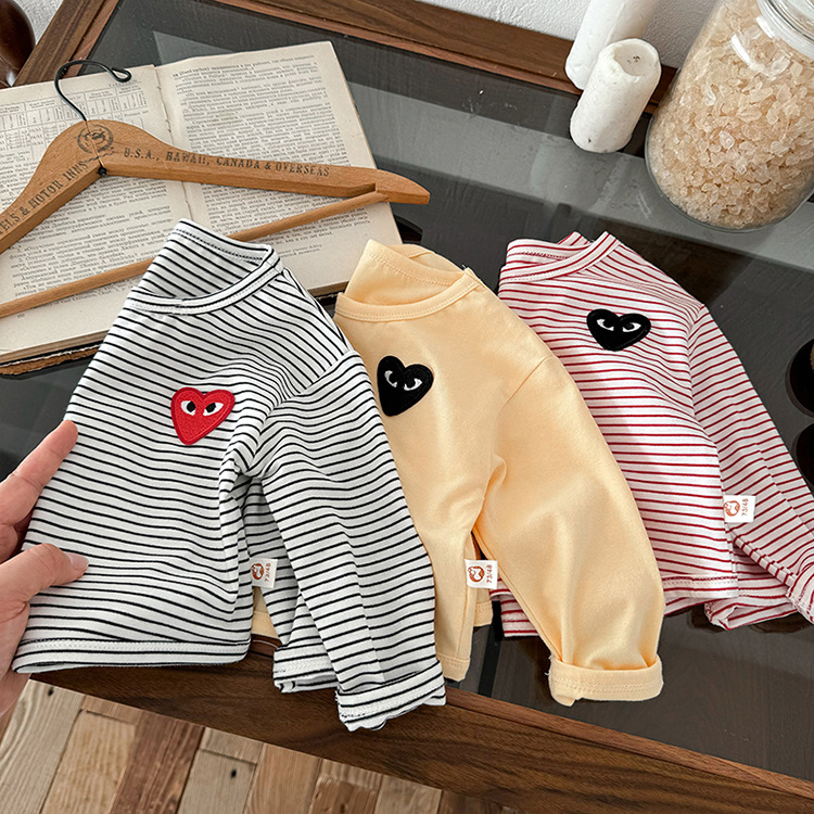 아동베이스 셔츠 봄과 가을 새 아기 긴 소매 최고 줄무늬 셔츠 남녀 아기 캐주얼 올 매치 티셔츠