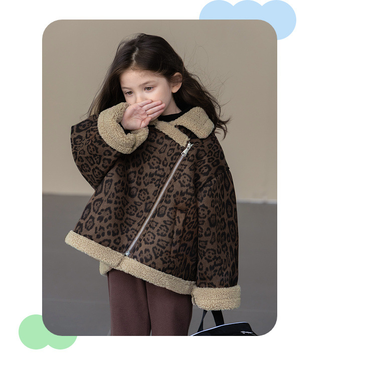 투투 코끼리 소녀의 기모 재킷 가을과 겨울 새로운 도착 바이커 옷 두꺼운 따뜻한 레오파드 무늬 어린이 자켓 탑스토어 가기