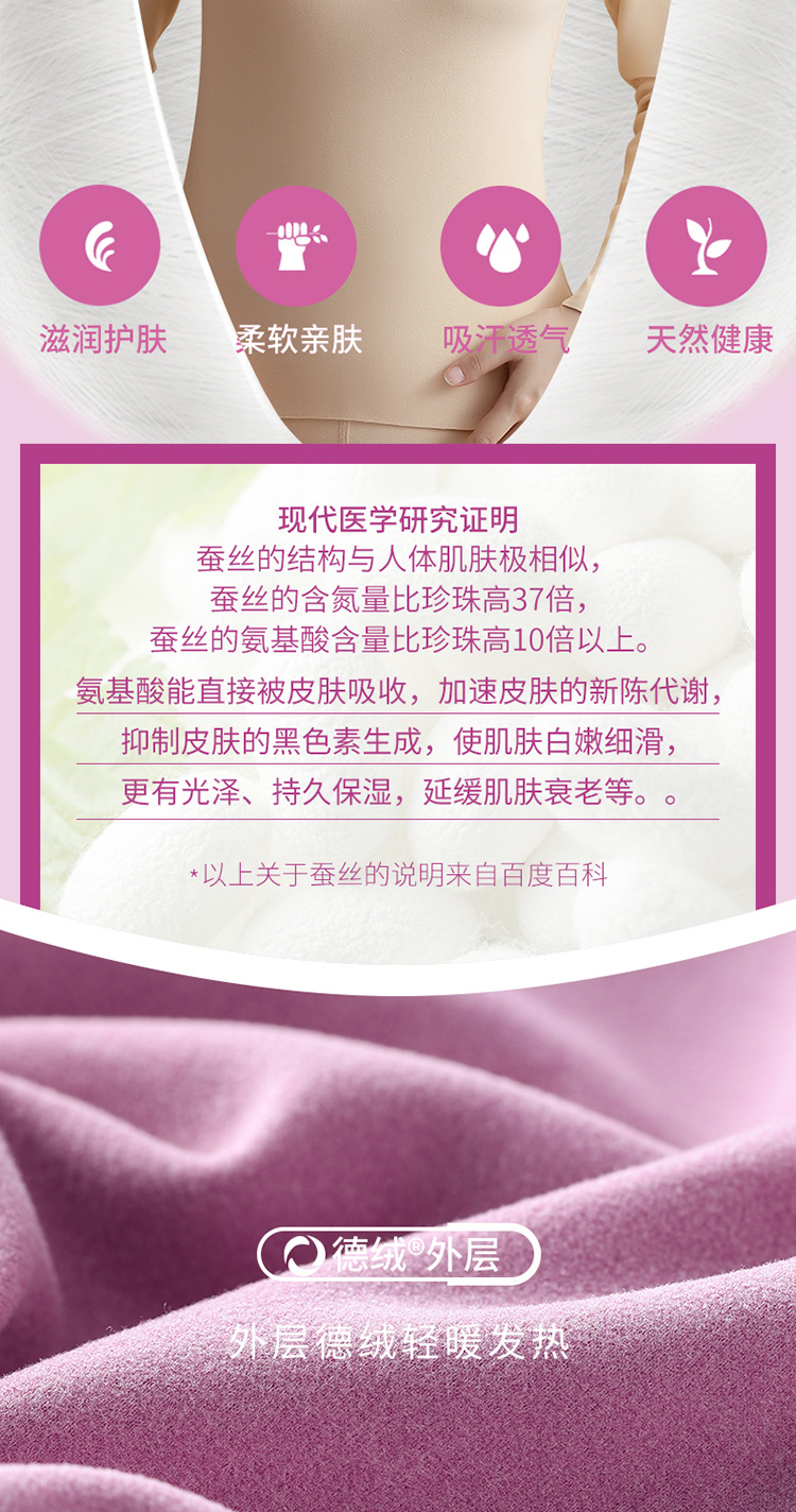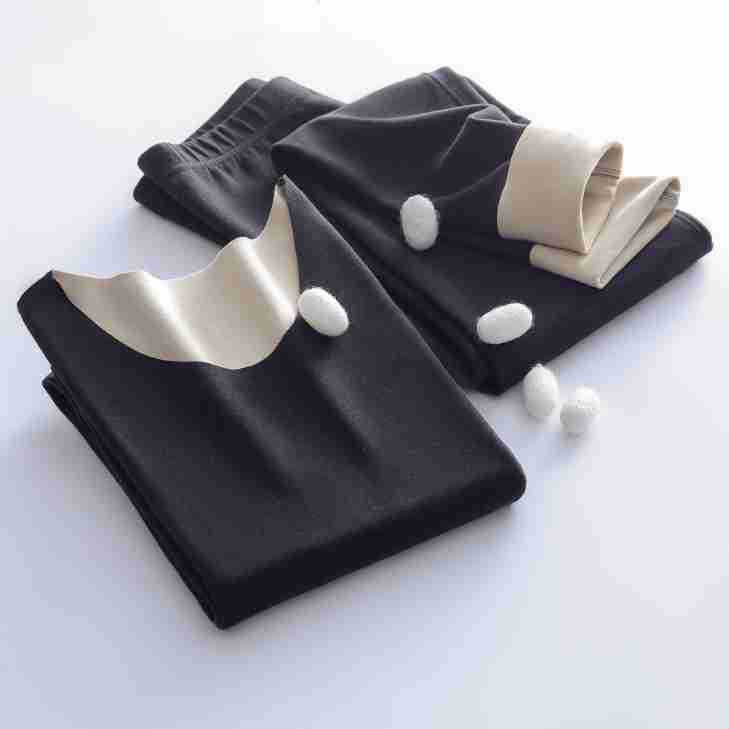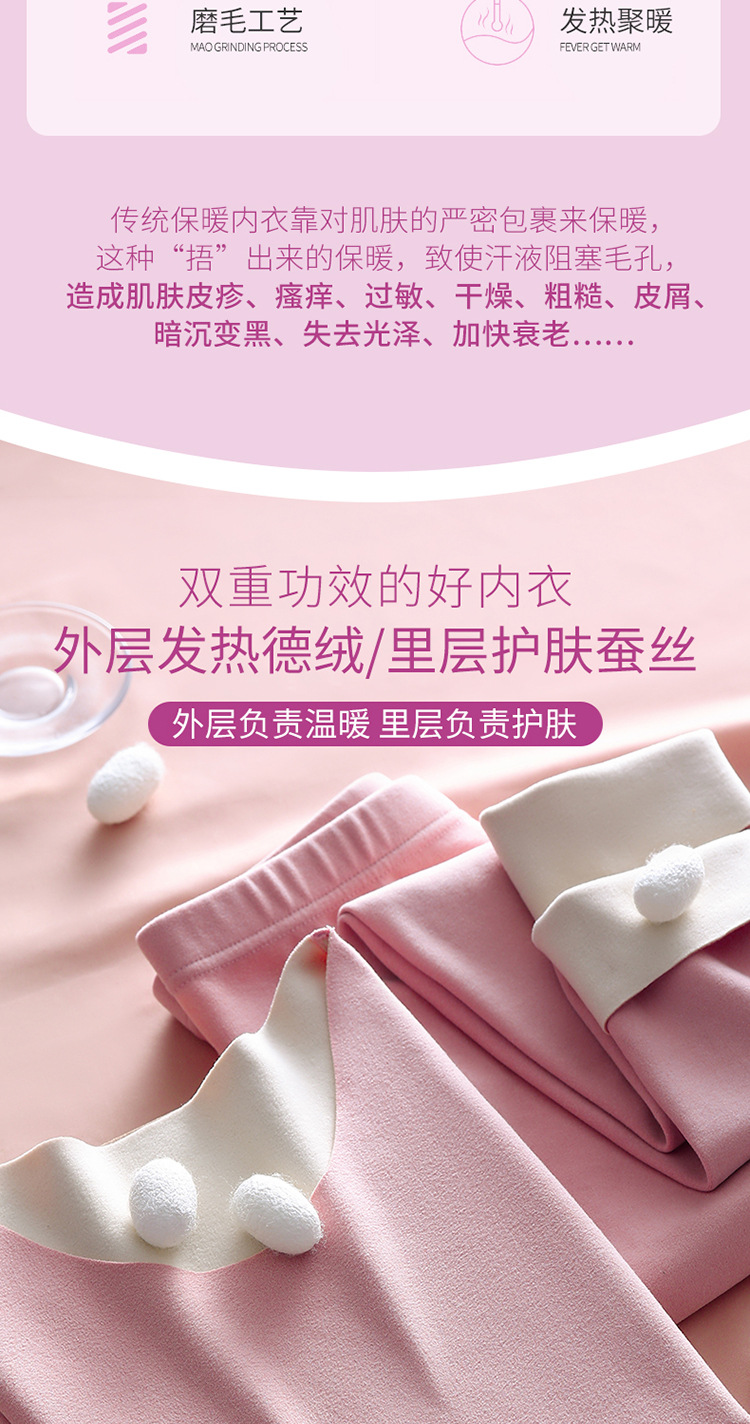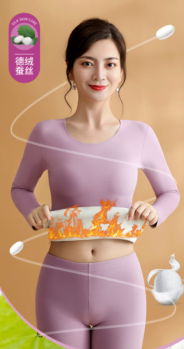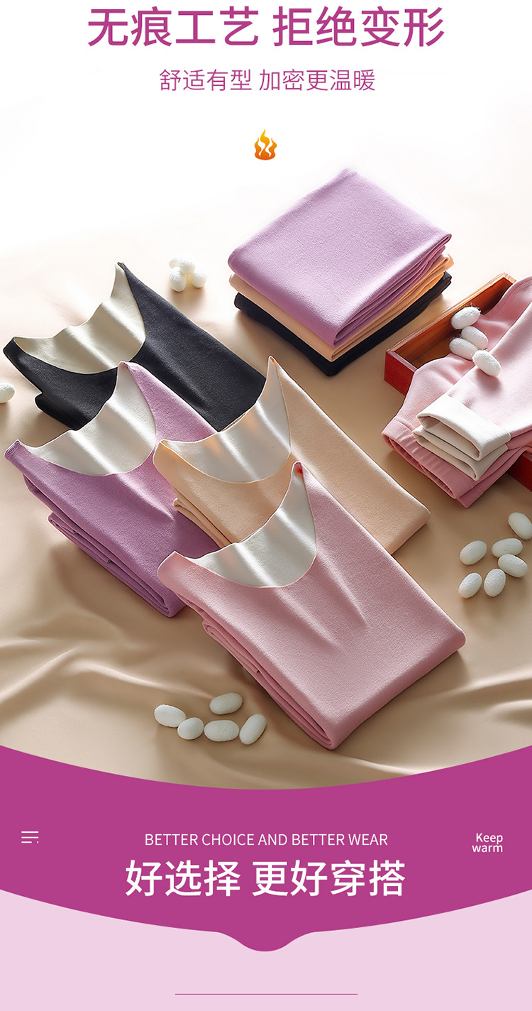 2024 새로운 울 실크 열 속옷 숙녀 AB 양면 샌딩 기모 원활한 가을 바지 세트스토어 가기
