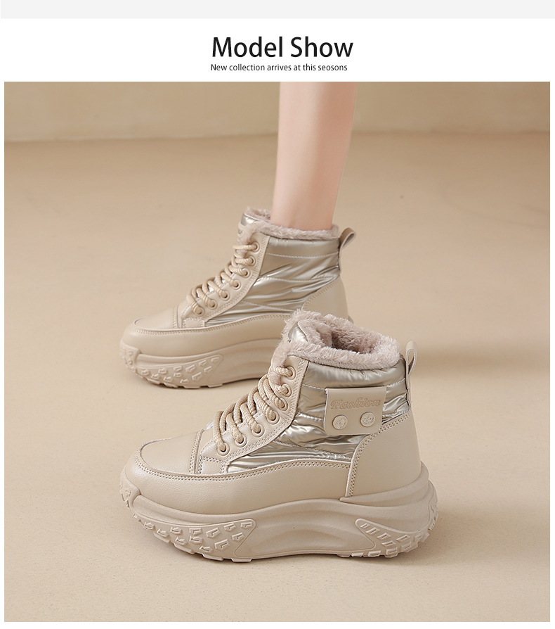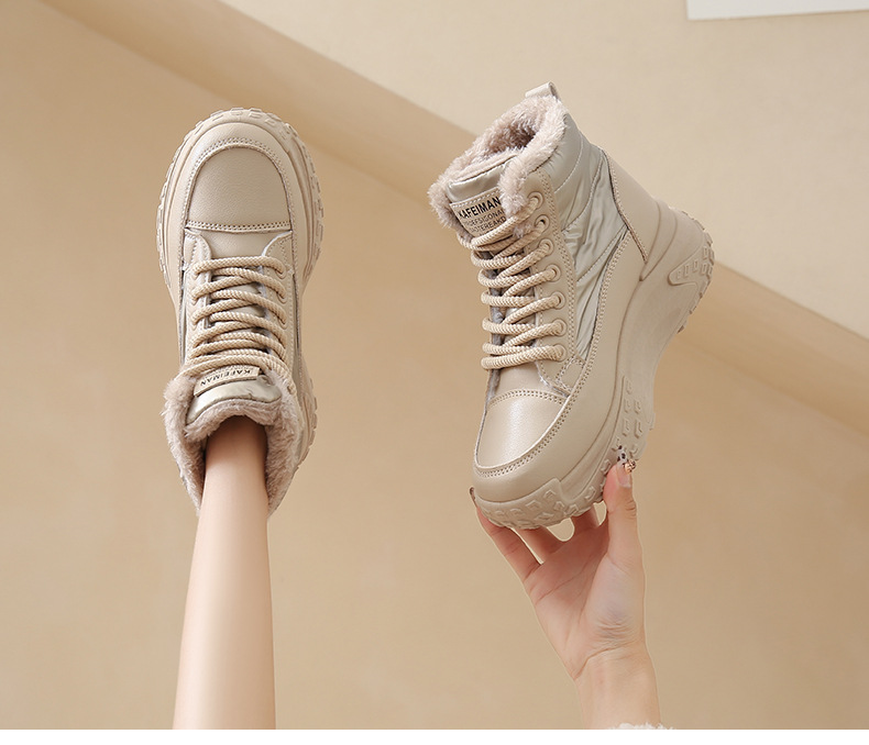 2024 겨울 최고급 야외 기모 토레 신발 새로운 한국 스타일 에 여성 학생 두꺼운 단독 높이 증가 레저 따뜻함스토어 가기