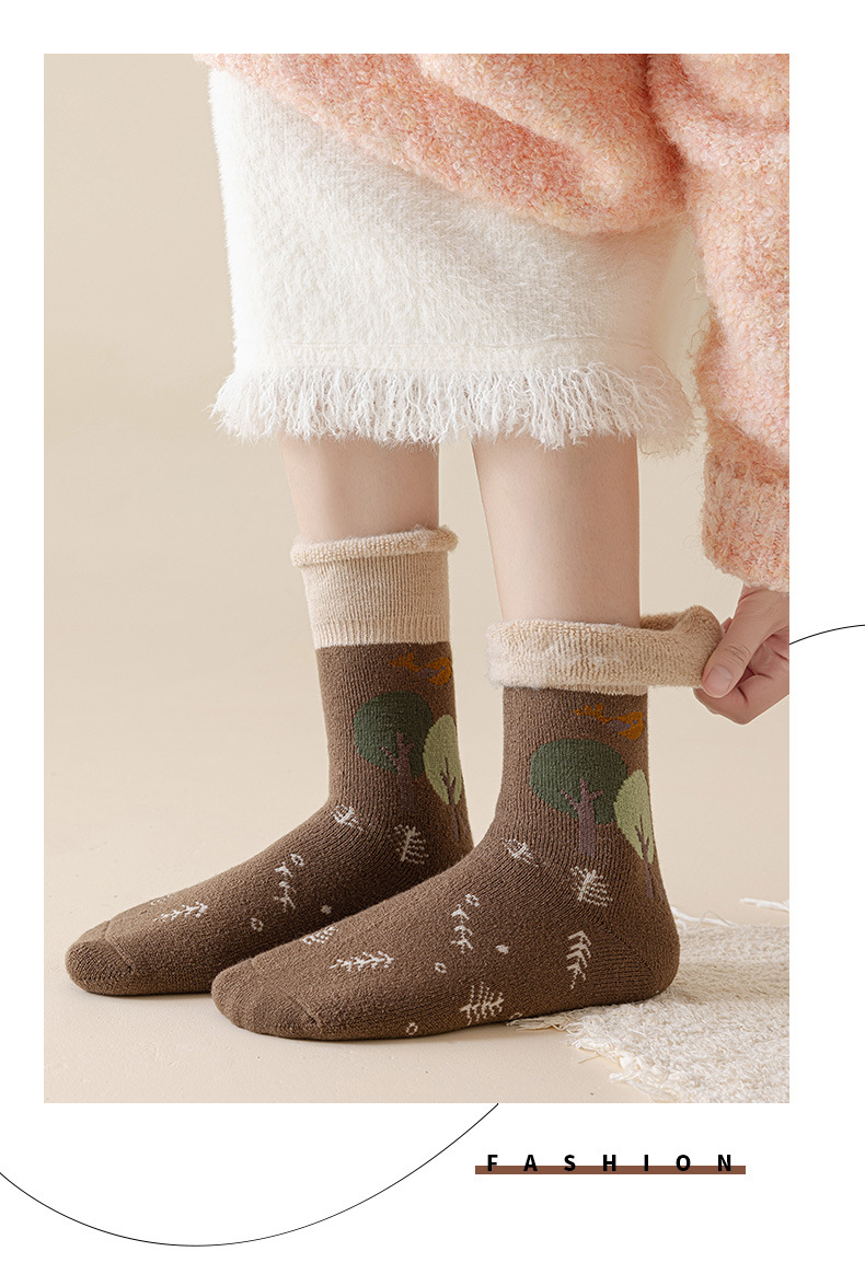 Ins 가을과 겨울 루프 기모 두꺼운 따뜻한 일본 스타일 플립 귀여운 만화 양모 중간 튜브 스택 양말 어린이 겨울스토어 가기