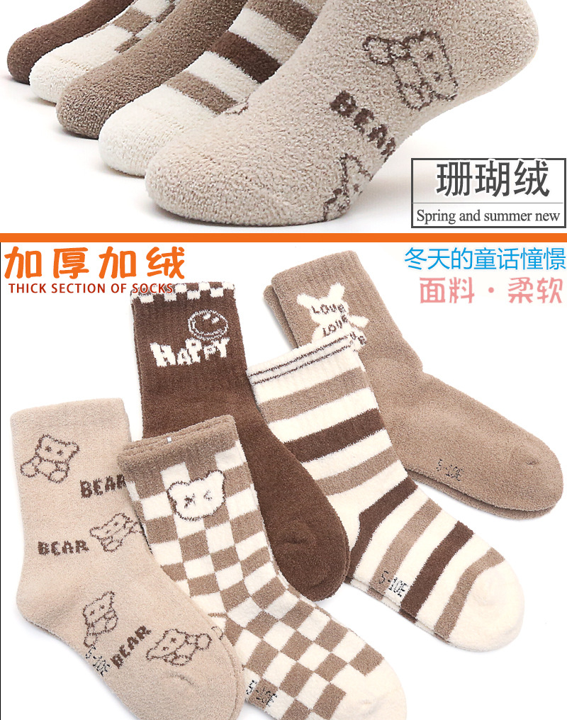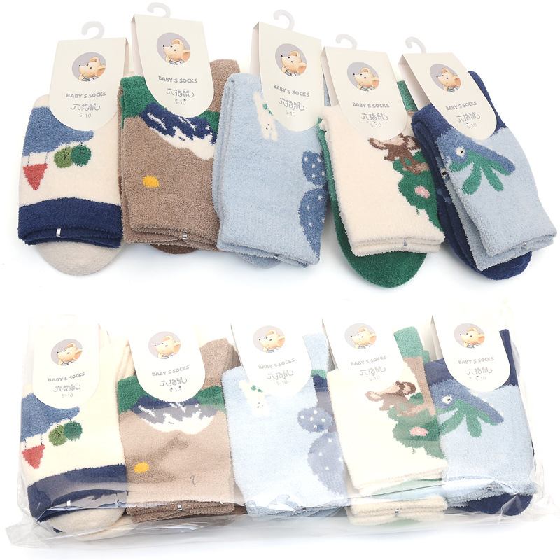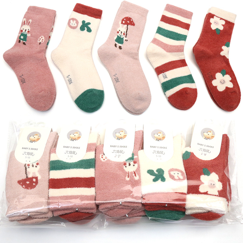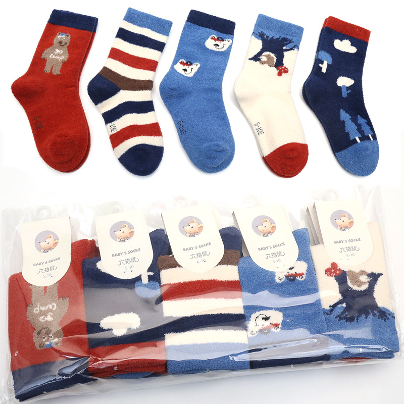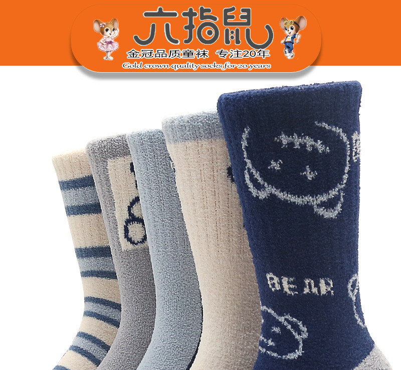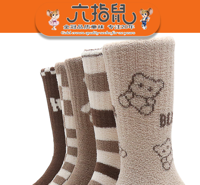 6 손가락 마우스 겨울 양말 두껍게 긴 산호 양털 어린이 양말 수면 따뜻한 높은 튜브 바닥 수건 양말 곰스토어 가기