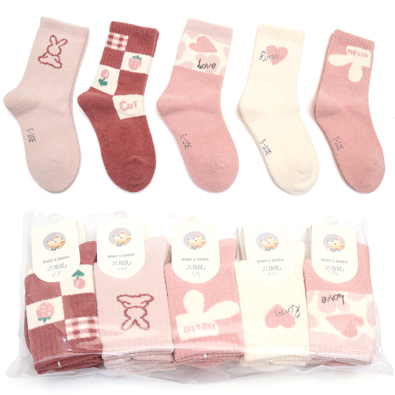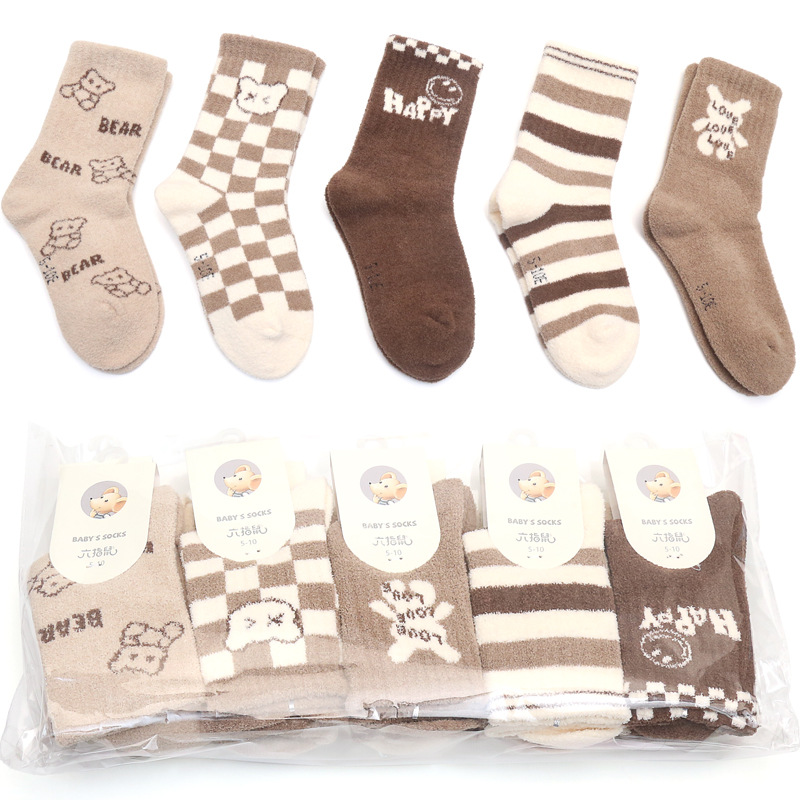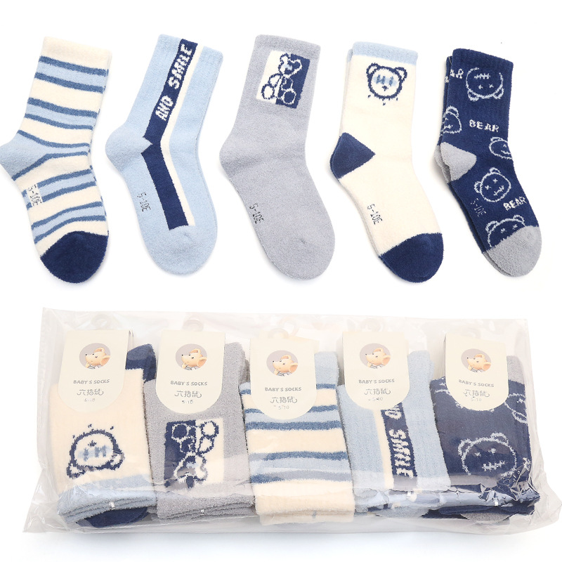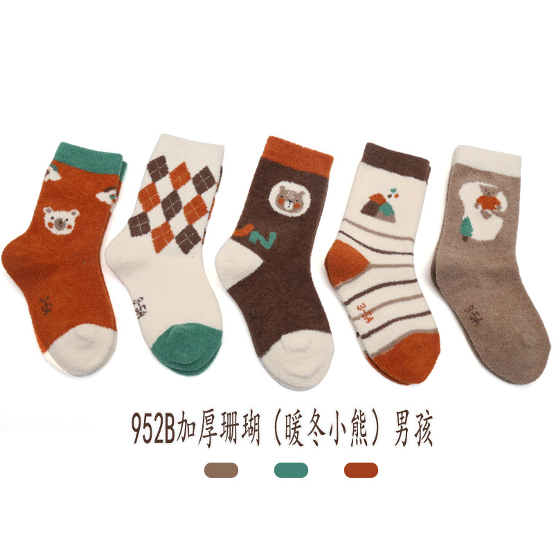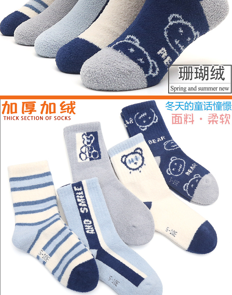 6 손가락 마우스 겨울 양말 두껍게 긴 산호 양털 어린이 양말 수면 따뜻한 높은 튜브 바닥 수건 양말 곰스토어 가기