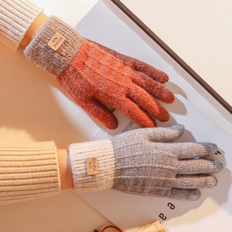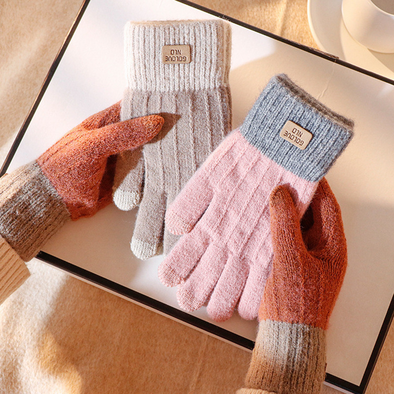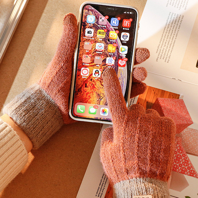가을 및 겨울 여성을위한 장갑 남성 학생을위한 운전 및 승차를위한 따뜻한 냉간 터치 스크린 울 장갑 풀 핑거 미끄럼 방지스토어 가기