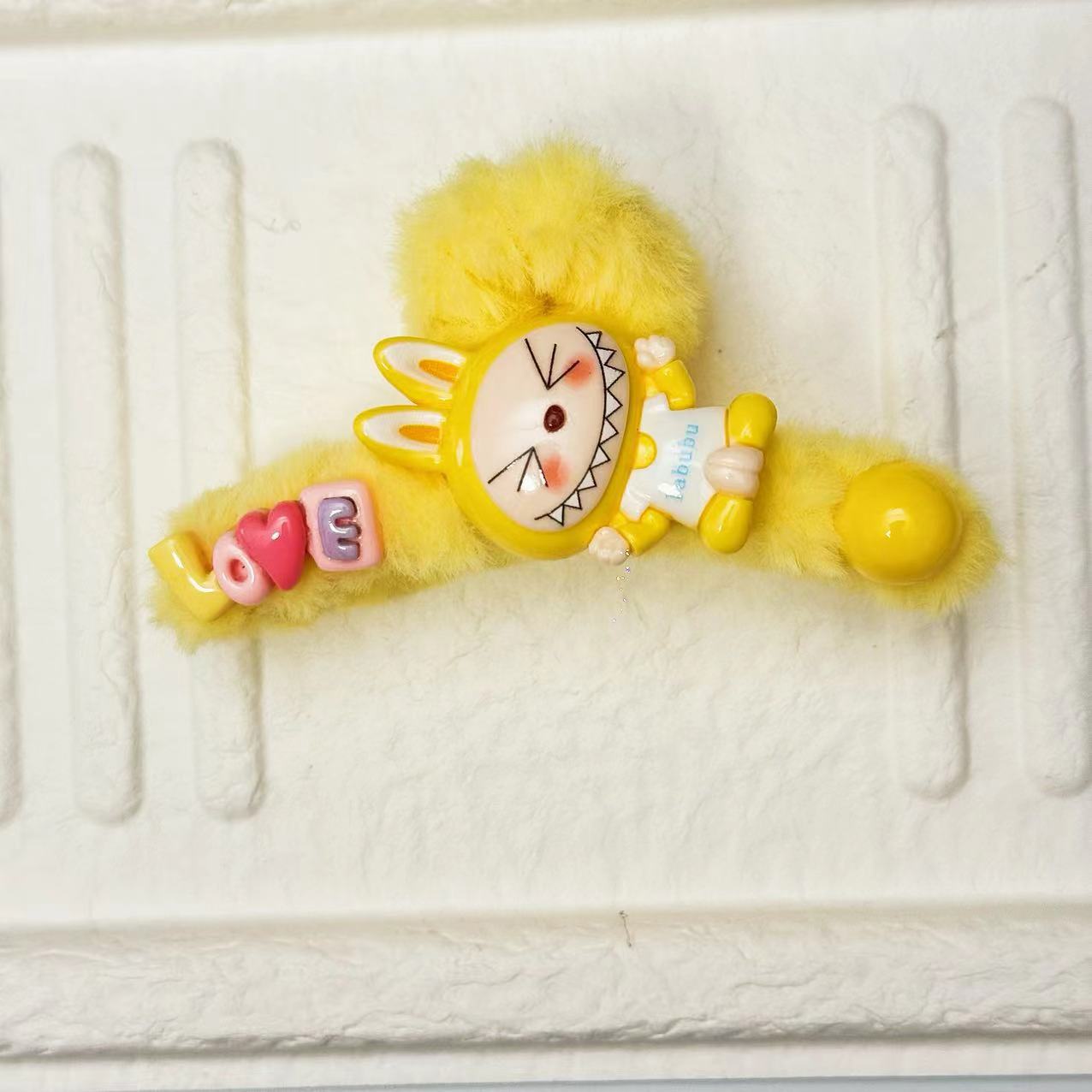 • 노란색 앉은 자세 라부부 털 뜯기 방지 매트 (단면)