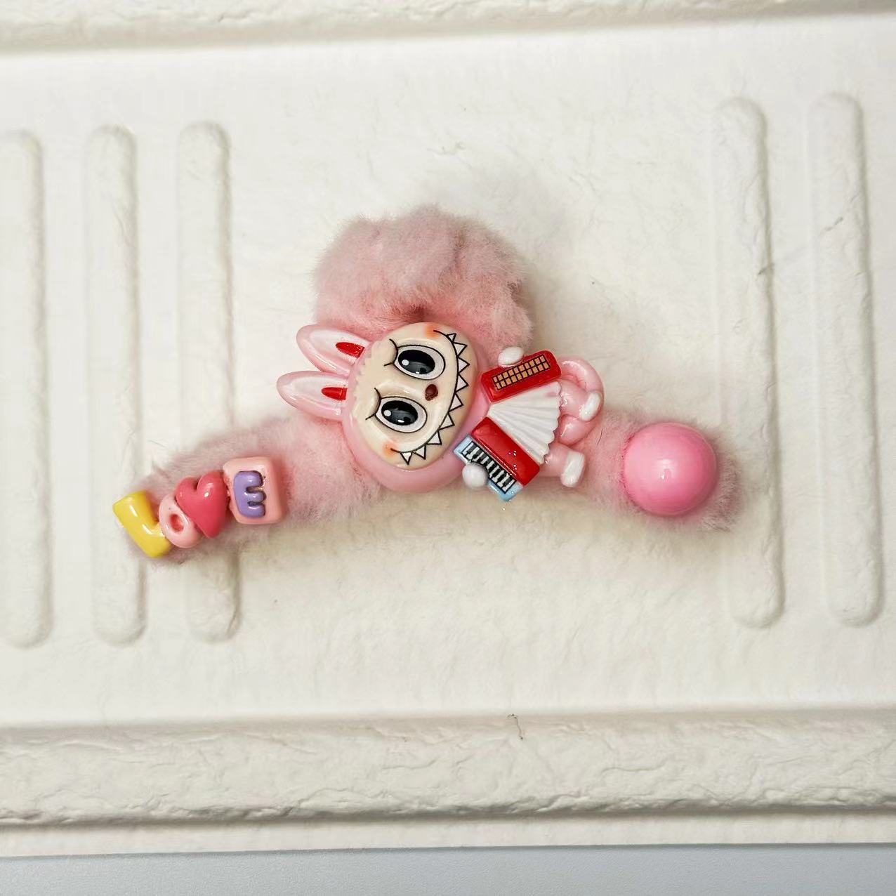 • 핑크색 아코디언 라부부 헤어그립(단면)