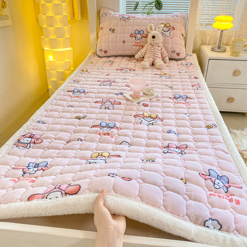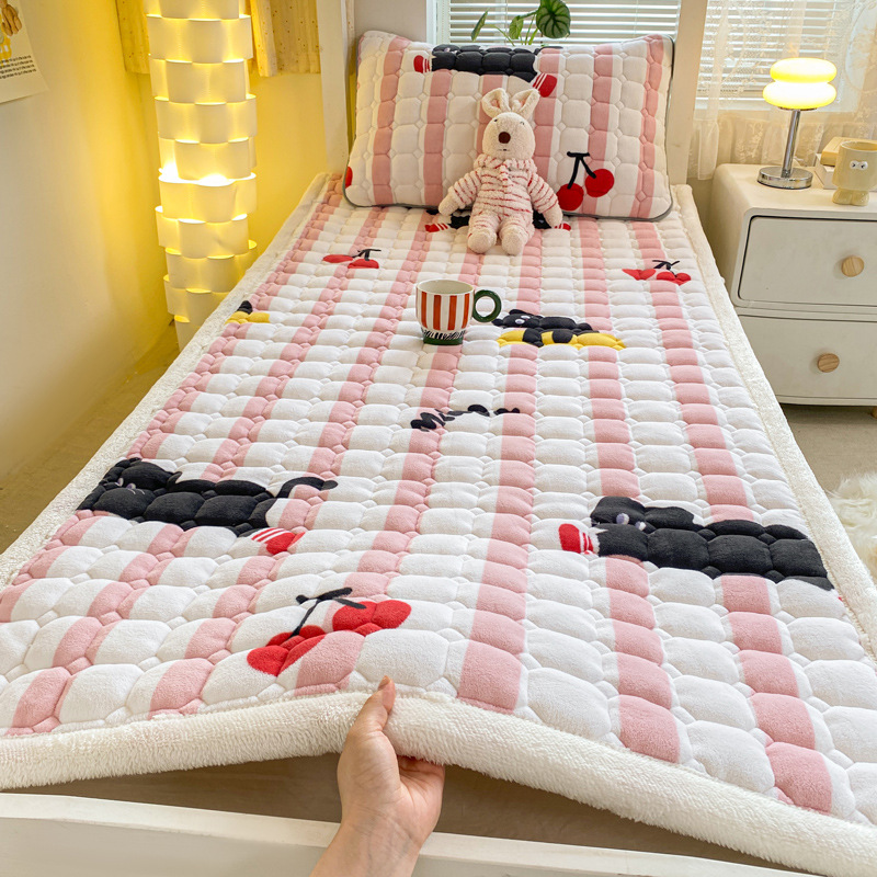 우유 벨벳 매트리스 침대 두꺼운 따뜻한 3 조각 침대보 패드 학생 기숙사 매트리스 침대 모자 쿠션스토어 가기