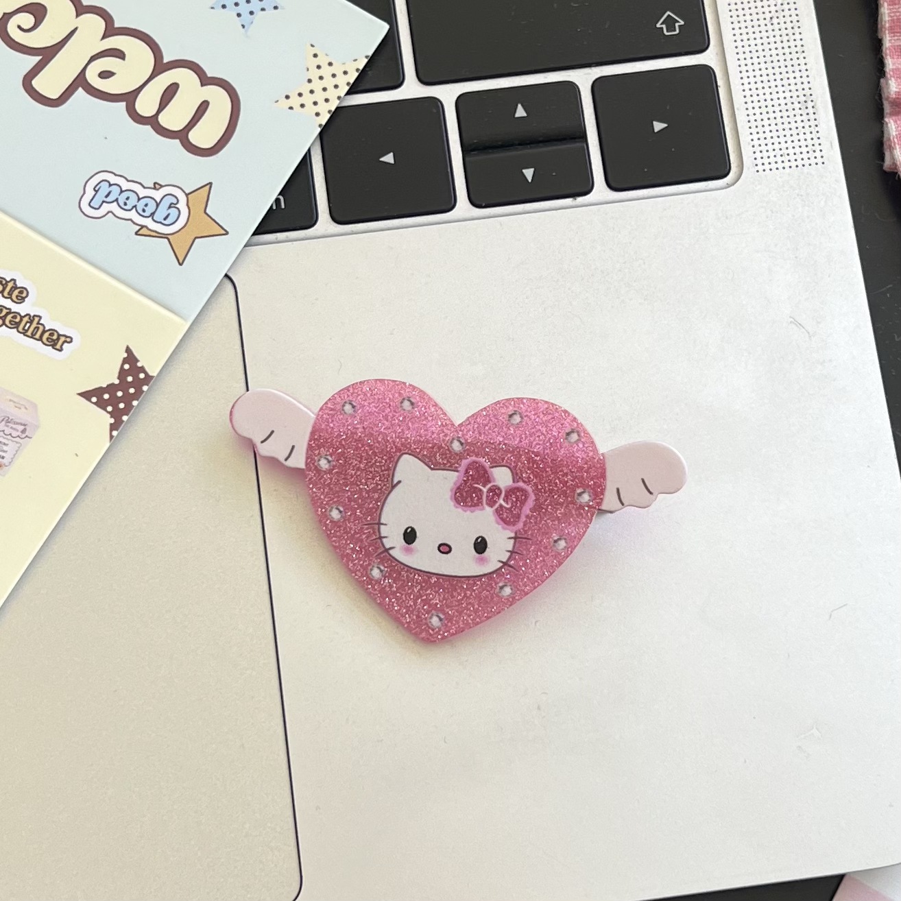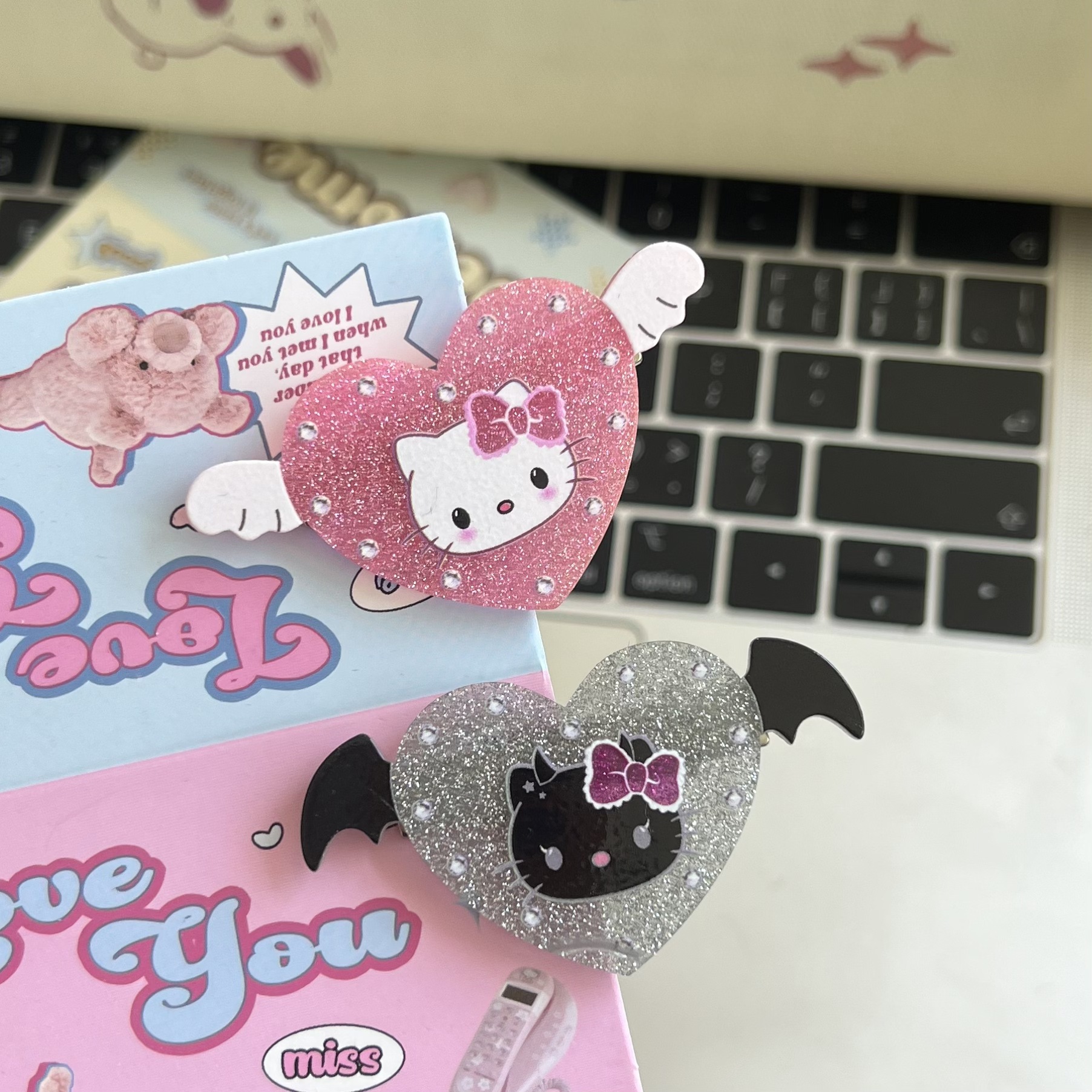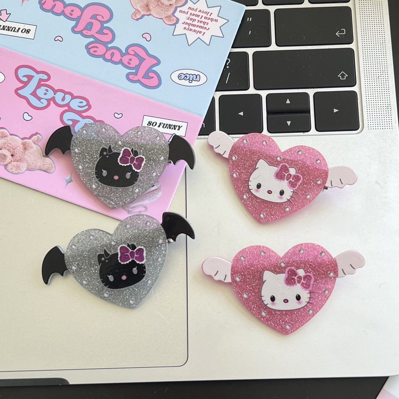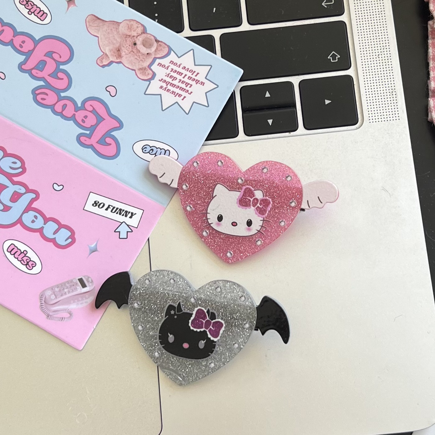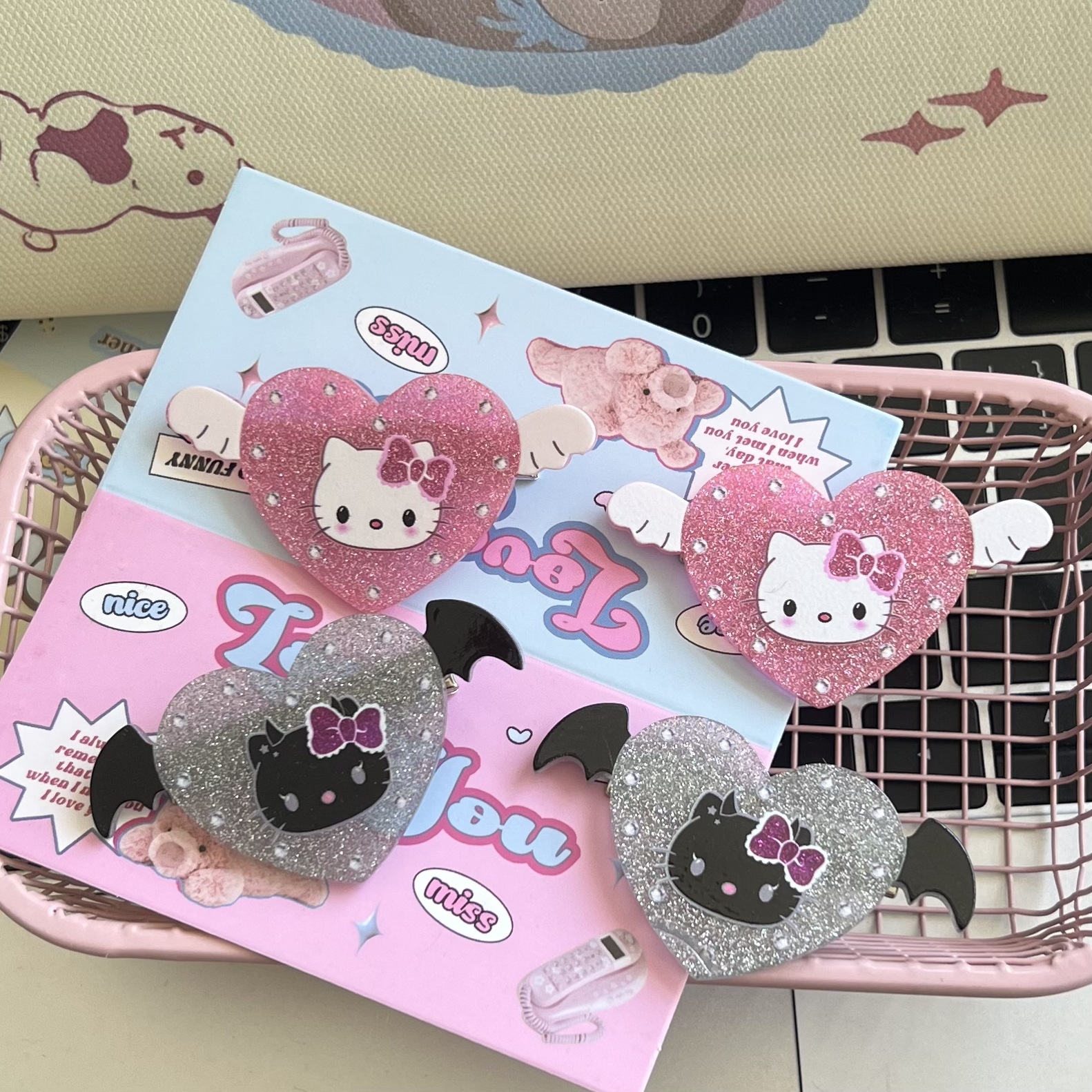 악마 KT 고양이 핑크 검은 사랑 날개 헤어핀 파인 파우더 귀여운 달콤한 올매치 만화 헤드웨어 여성 뱅 사이드 클립