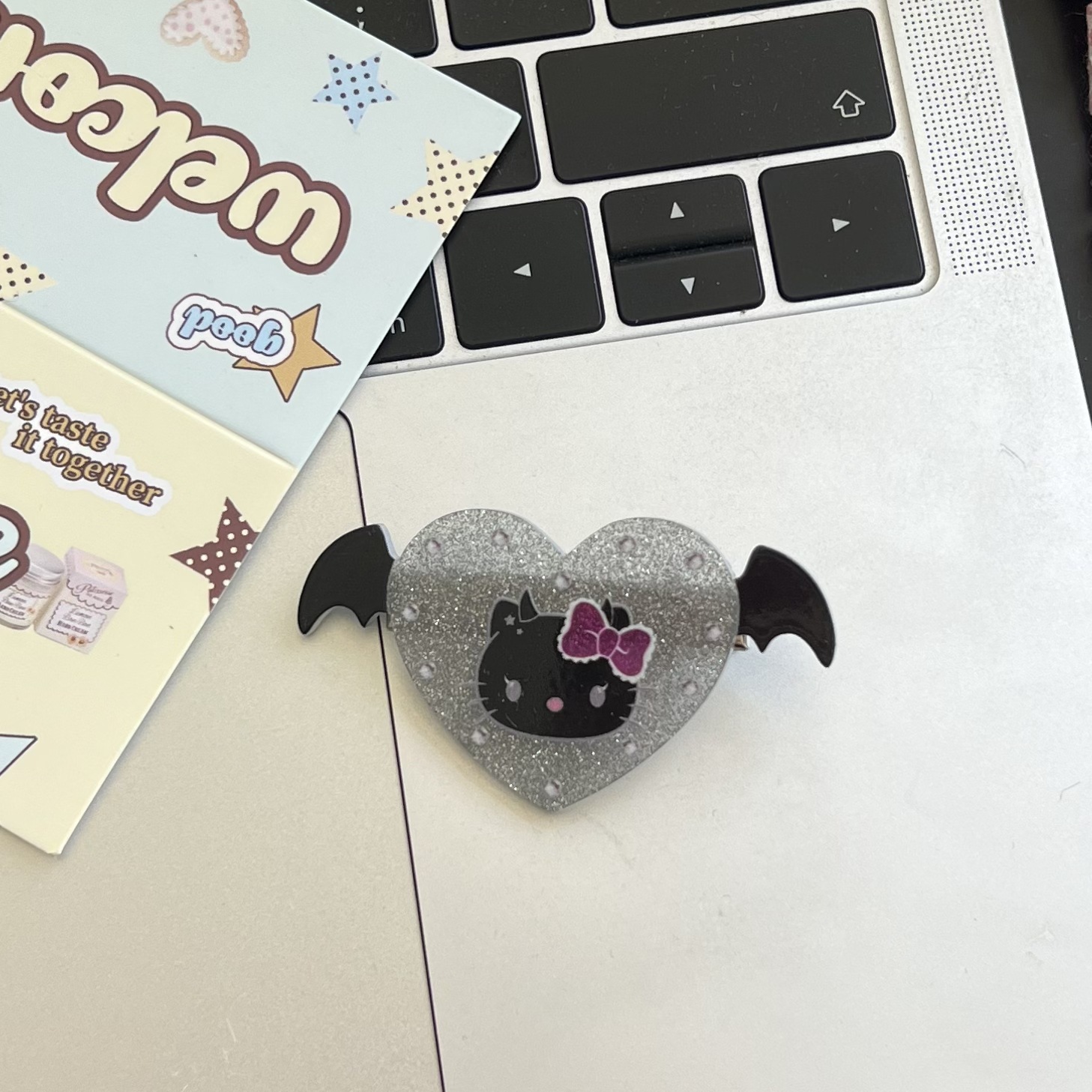 악마 KT 고양이 핑크 검은 사랑 날개 헤어핀 파인 파우더 귀여운 달콤한 올매치 만화 헤드웨어 여성 뱅 사이드 클립스토어 가기