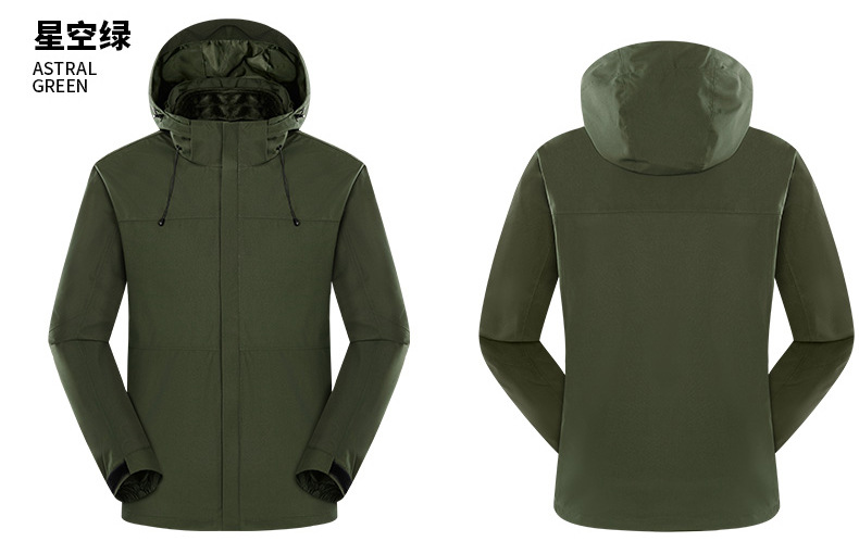 야외 충전 의류 남성과 여성의 후드 작업복 방수 방풍 따뜻한 양털 라이너 분리 가능한 등산 재킷