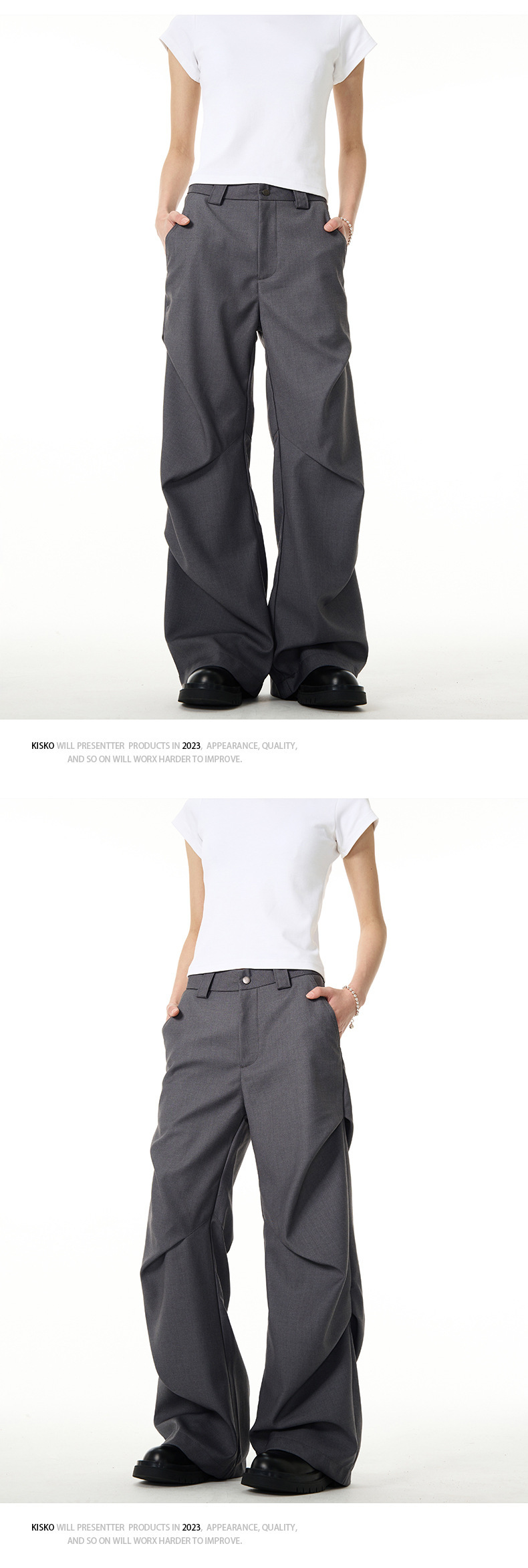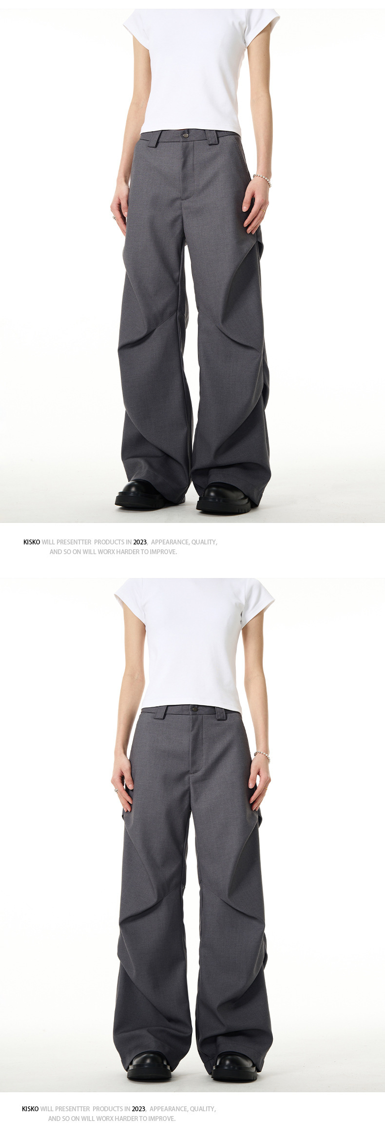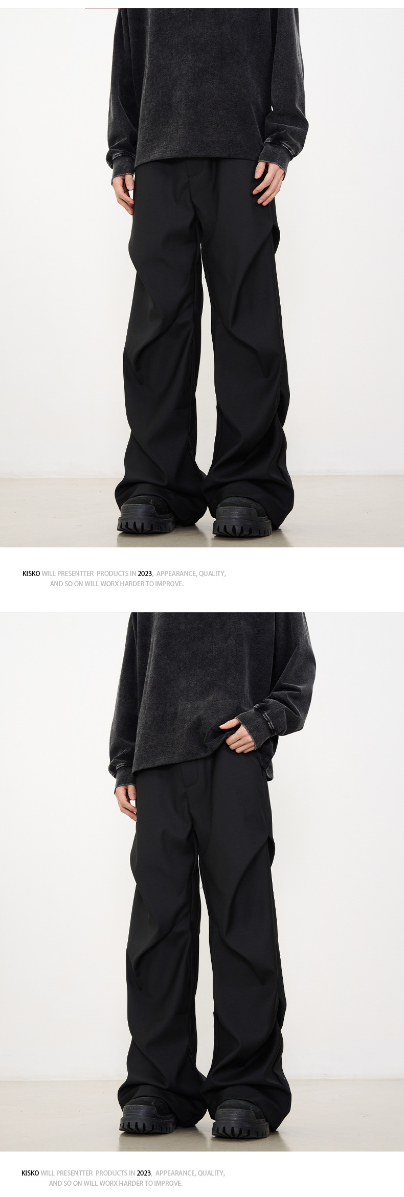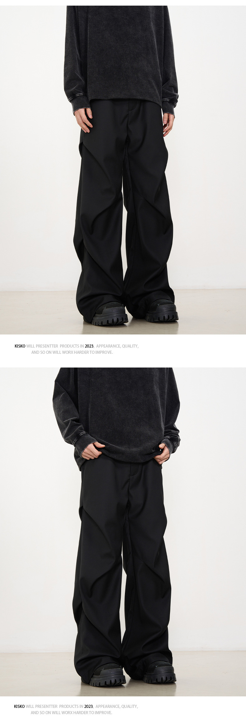 미국식 틈새 주름 걸레 캐주얼 바지 남성 봄과 가을 새로운 하이 엔드 루즈 스트레이트 바지