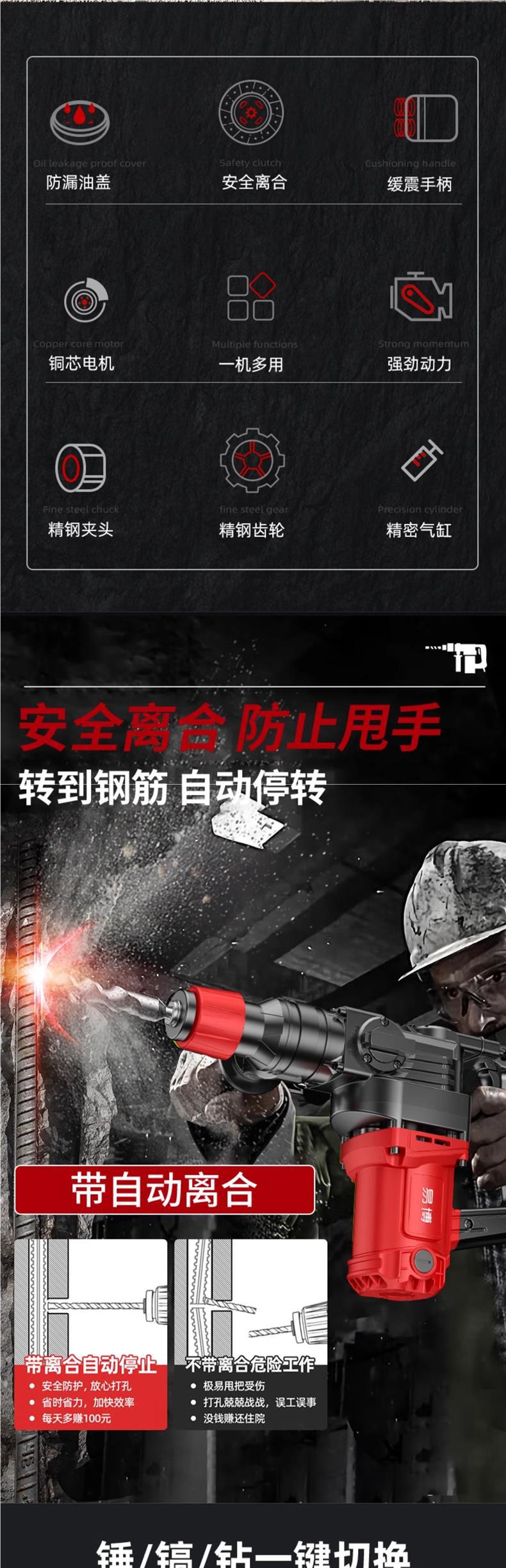 이보 전기 망치 전기 시계 전기 선택 고출력 콘크리트 벽 구멍 다기능 가정용 클러치 이중 목적 충격 드릴스토어 가기