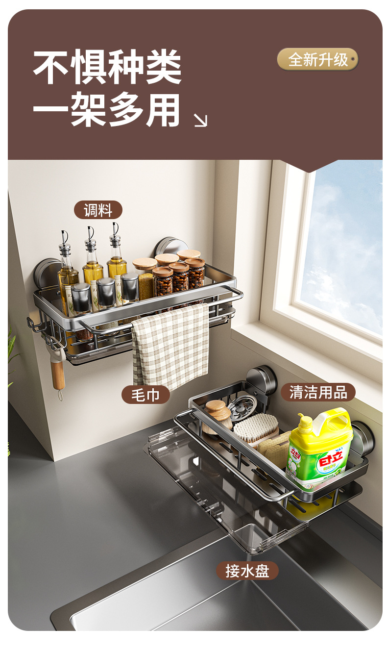 펀치없는 싱크 랙 벽 마운트 싱크 마감 용품 저장 랙 공간 알루미늄 빨판 주방 배수 저장 랙스토어 가기
