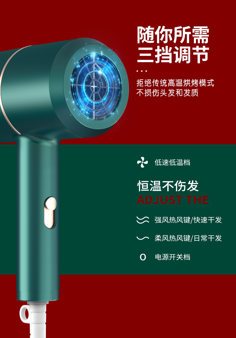 국경을 넘는 인기 헤어드라이어, 학생 기숙사용 강력한 바람, 가정용 헤어드라이어, 음이온 헤어케어 선물용 전기 헤어드라이어