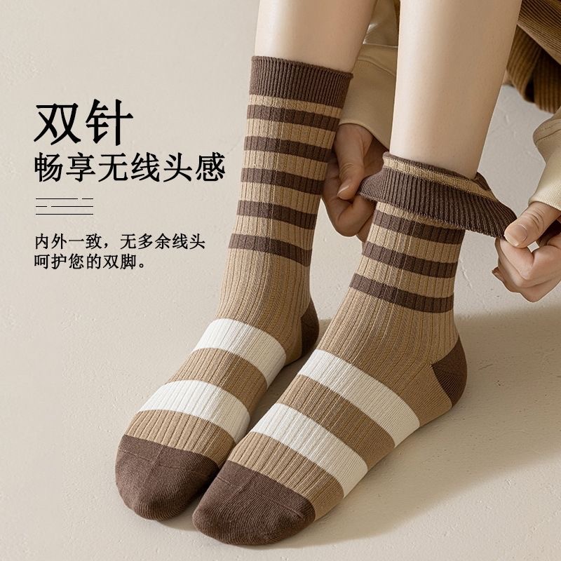 양말 여성 폭발 Maillard 여성의 배럴 줄무늬 스타킹 땀이 가을과 겨울 양말을 흡수하는 여성 배럴 양말스토어 가기