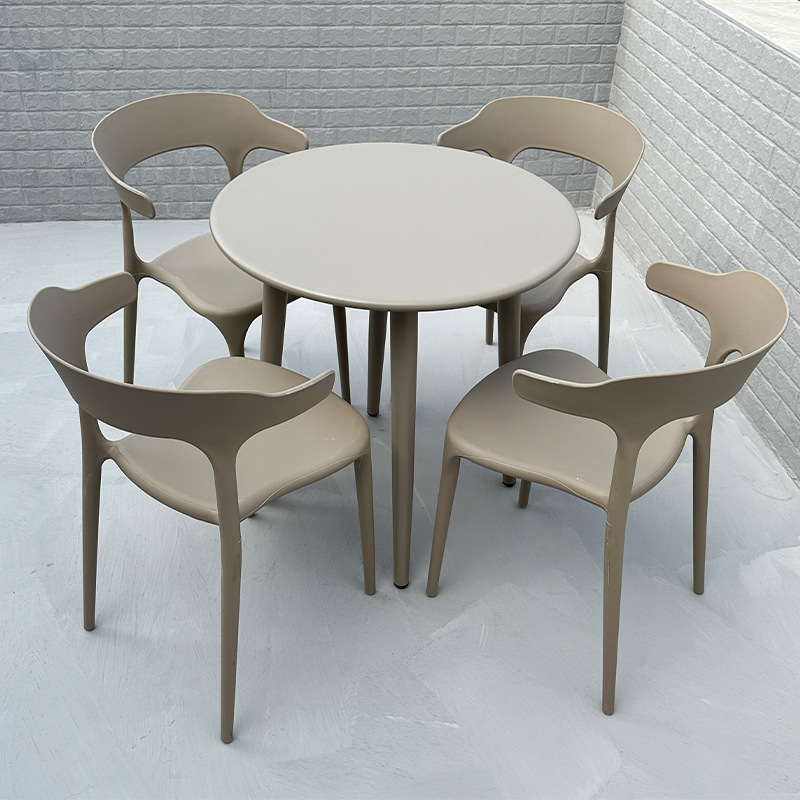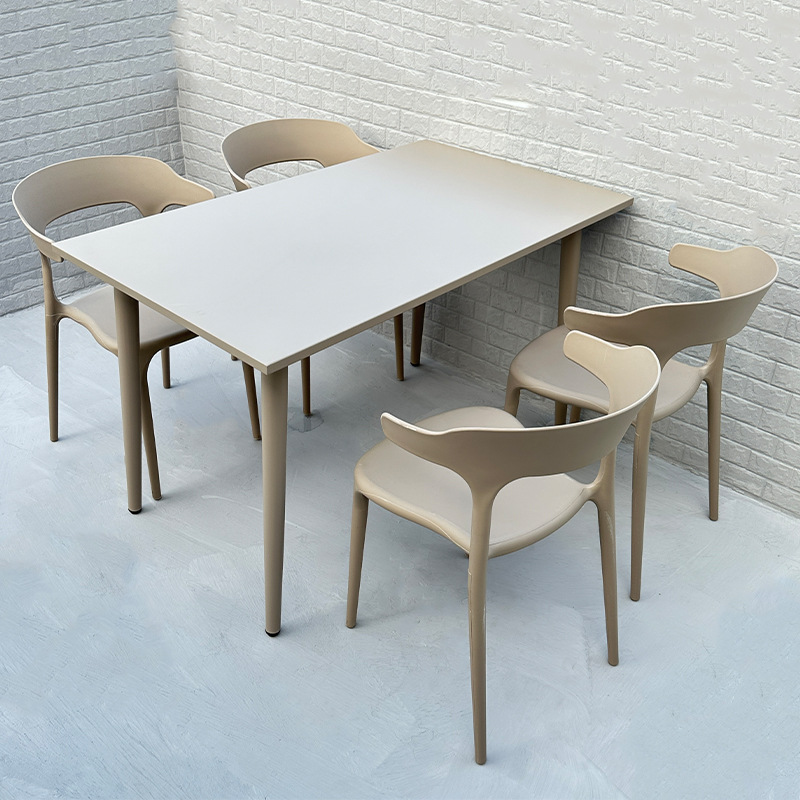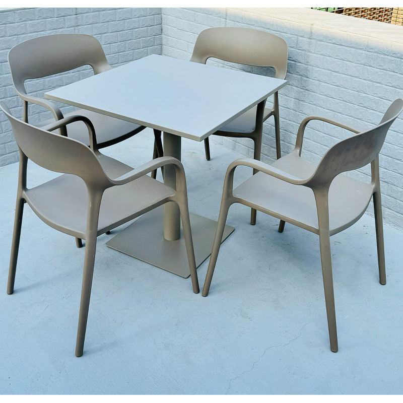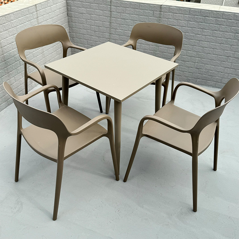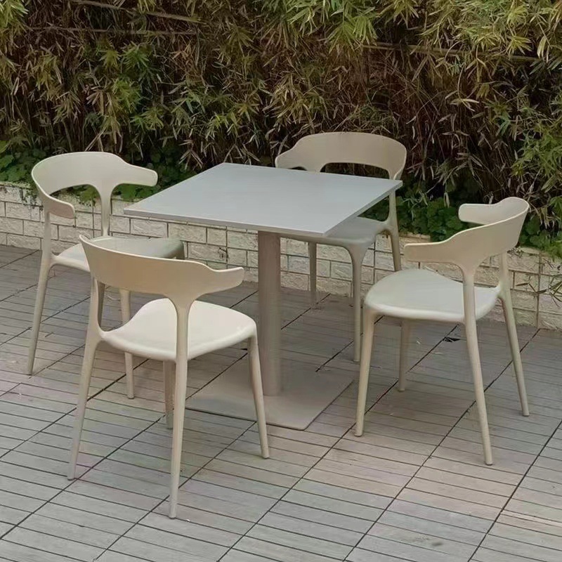 • [샴페인 컬러] 등받이 의자 4개 + 70cm PP 플라스틱 사각 테이블