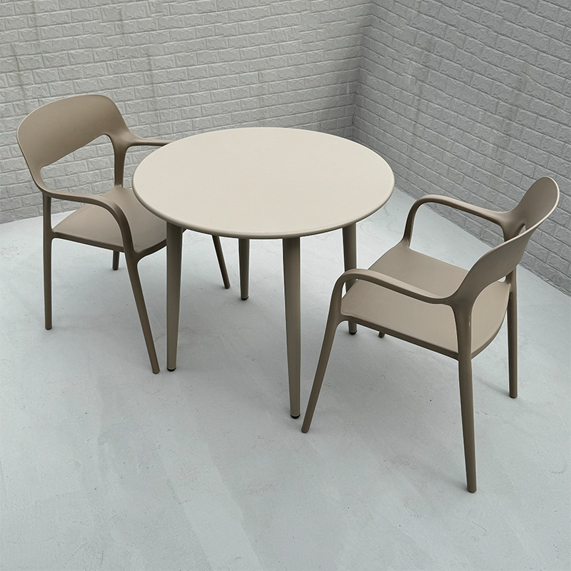 • [샴페인 컬러] 의자 2개 + 80cm 테이퍼드 다리 탄소강 원형 테이블