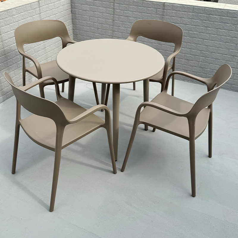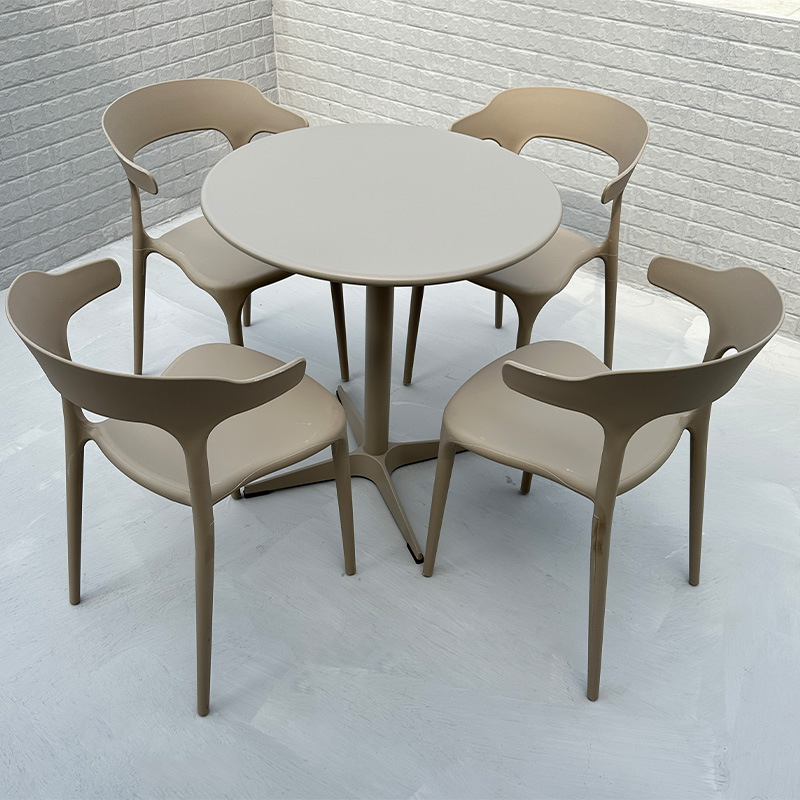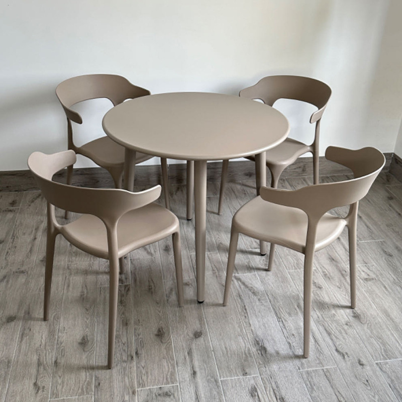 • [샴페인 컬러] 의자 4개 + 80cm 테이퍼드 다리 탄소강 원형 테이블