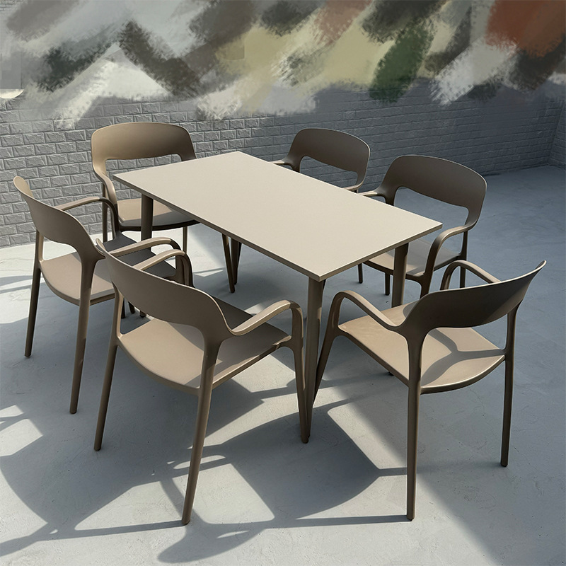 • [샴페인 컬러] 등받이 의자 6개 + 130*80cm 탄소강 롱 테이블