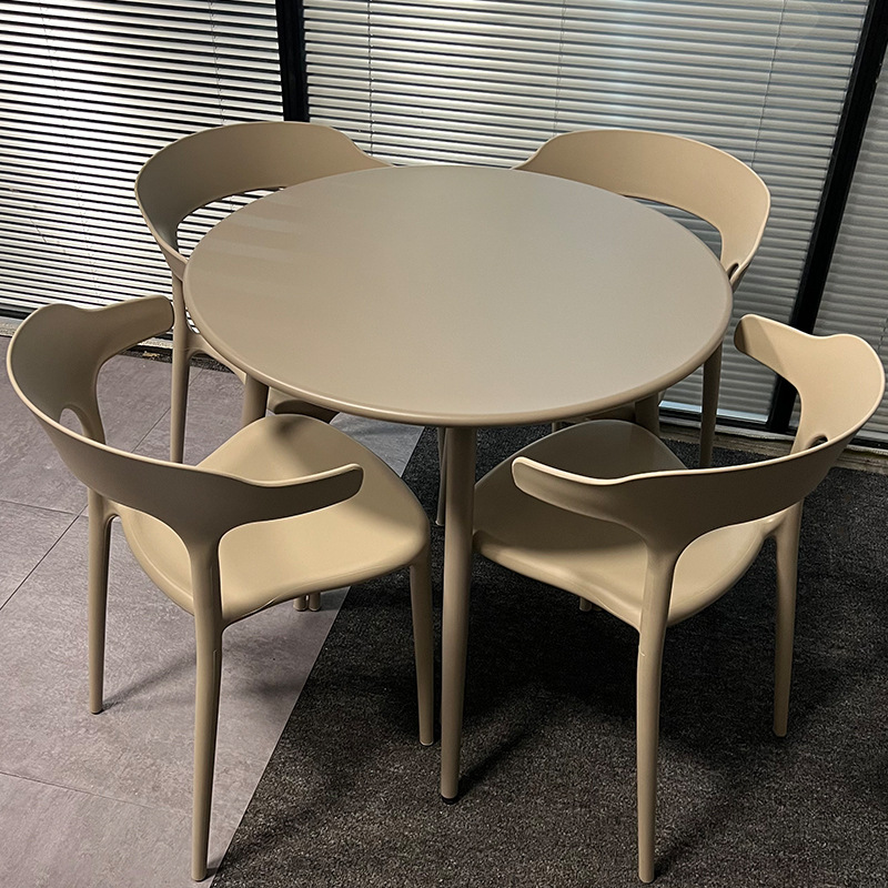 • [샴페인] 의자 4개 + 70cm 테이퍼드 다리 탄소강 원형 테이블