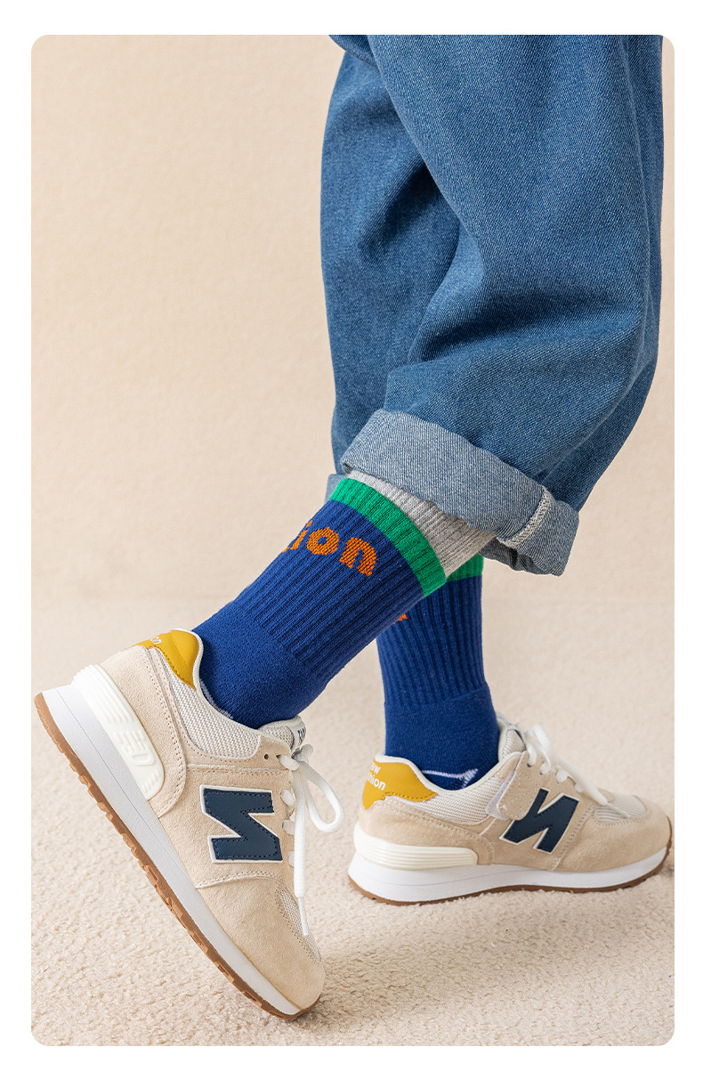 어린이 양말 소년 소녀 통기성 양말 가을 및 겨울 농구 스포츠 양말 가을 및 겨울 십대 중간 튜브 양말 편지