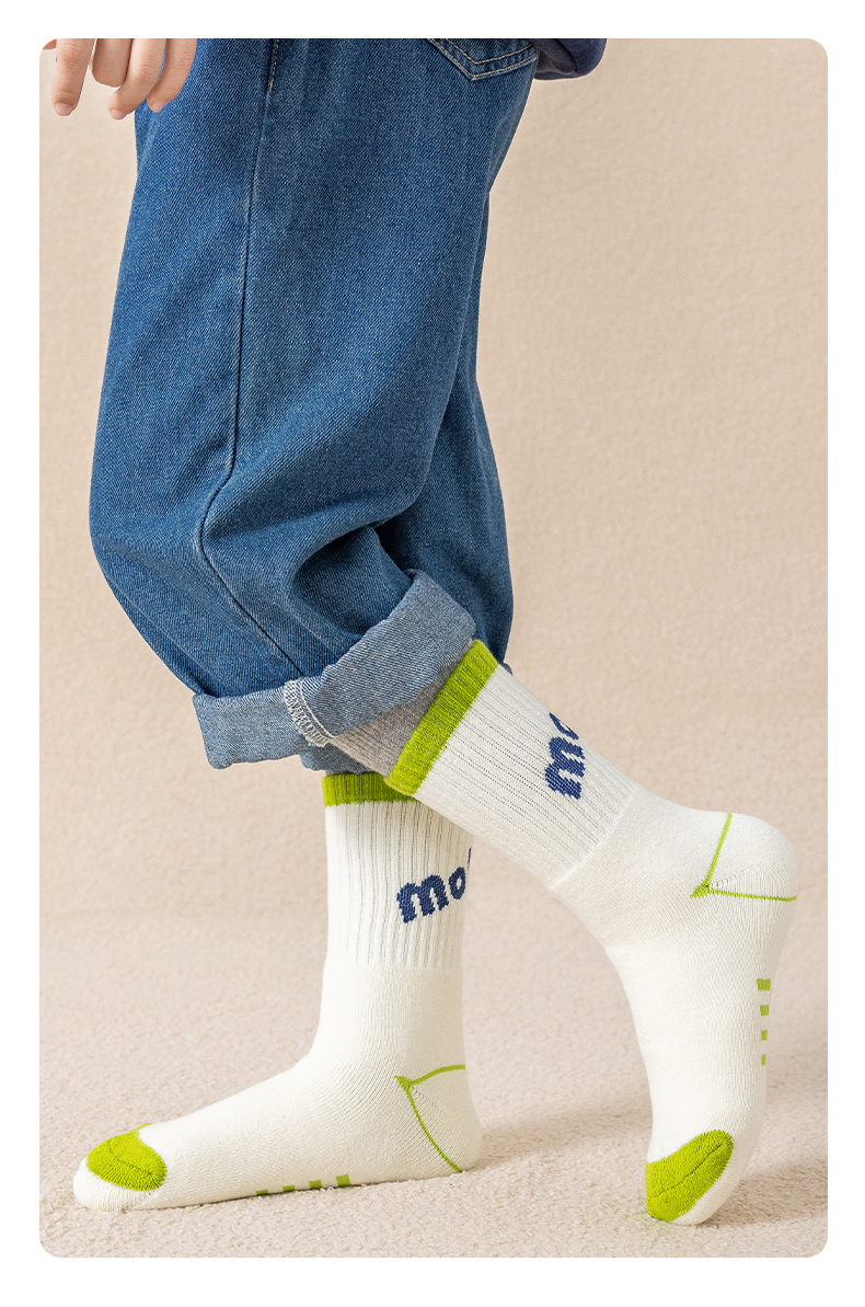 어린이 양말 소년 소녀 통기성 양말 가을 및 겨울 농구 스포츠 양말 가을 및 겨울 십대 중간 튜브 양말 편지스토어 가기