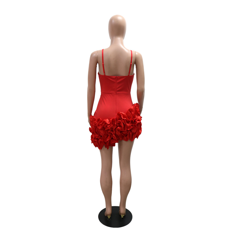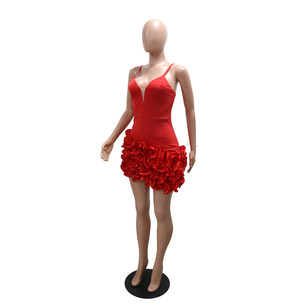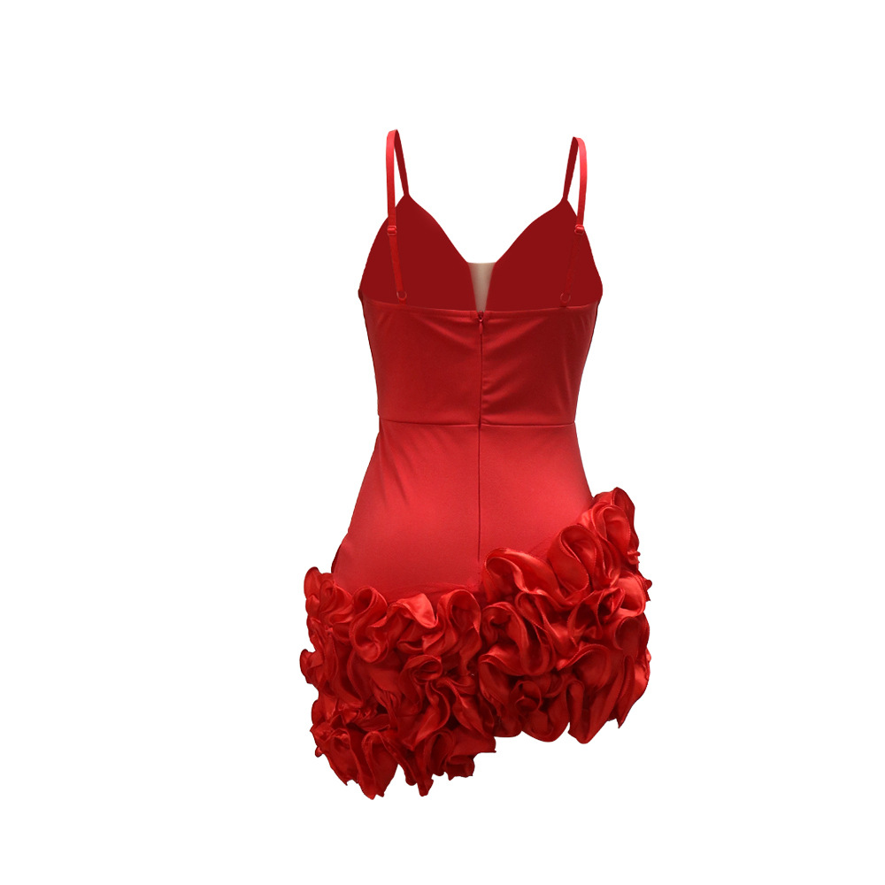 CY901550 유럽과 미국의 국경 새로운 패션 섹시 슬링 솔리드 컬러 로터스 리프 레이스 불규칙한 원피스 스커트스토어 가기