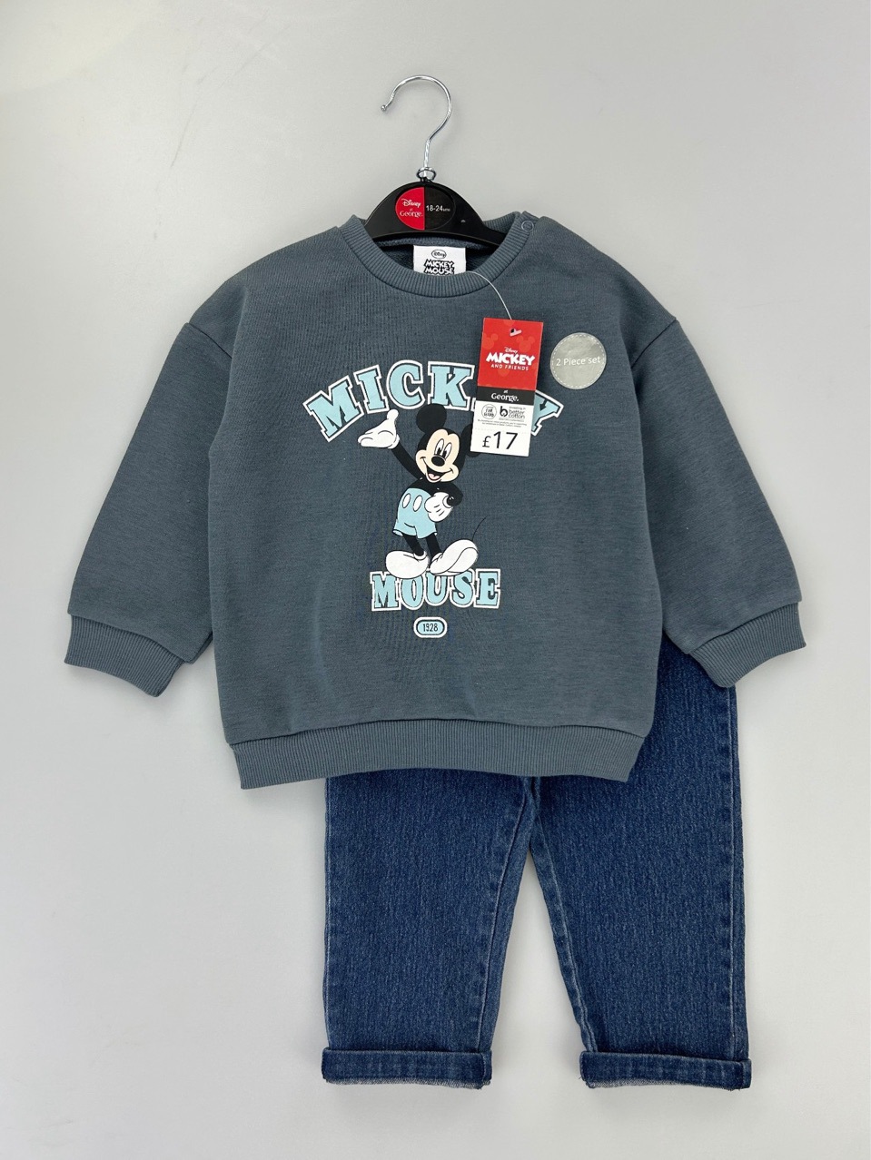 뜨거운 2024 어린이 세트 국경 아기 데님 봄과 가을 캐주얼 세트 만화 패션 2 피스 세트 0-3 세스토어 가기