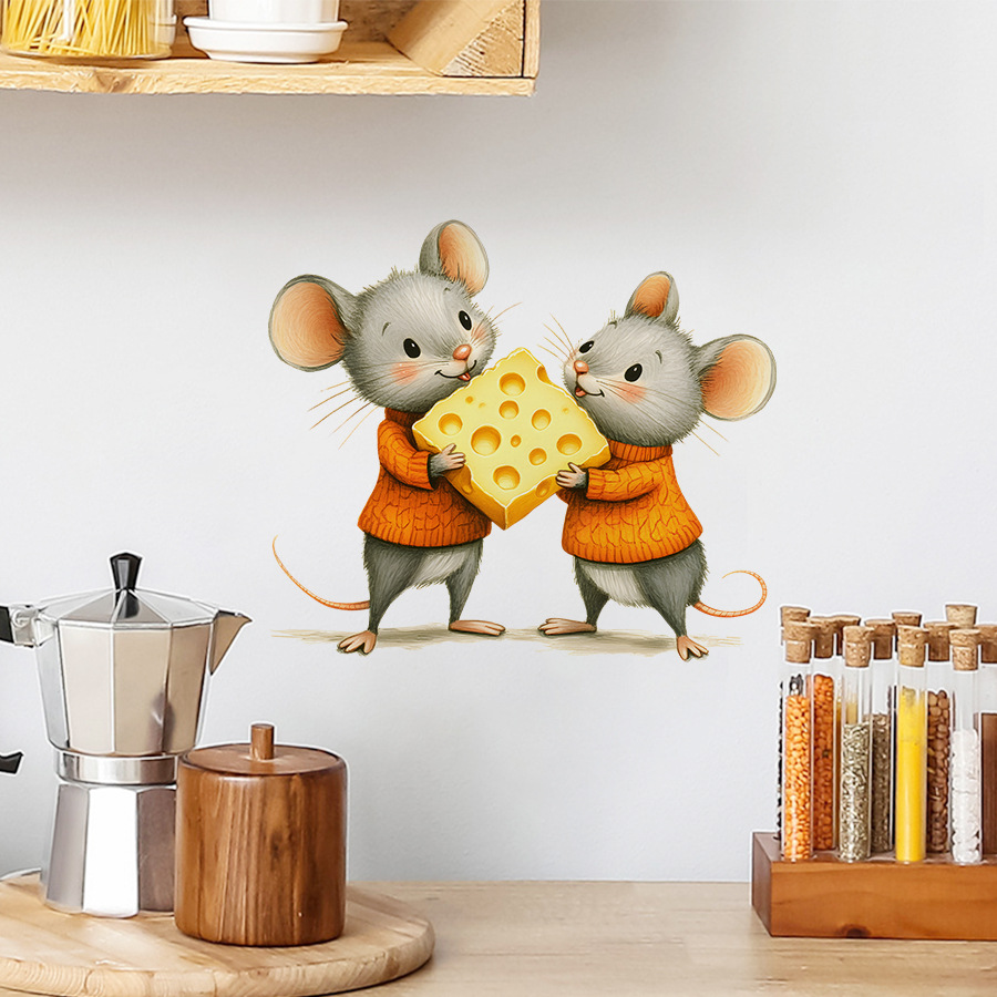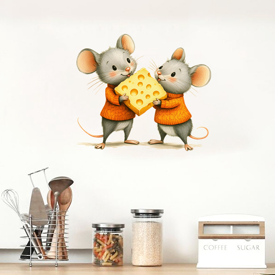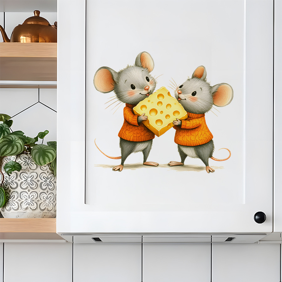 만화 치즈 작은 마우스 귀여운 냉장고 스티커 자기 접착 벽 스티커 주방 레스토랑 룸 장식 스티커 ZN3189C