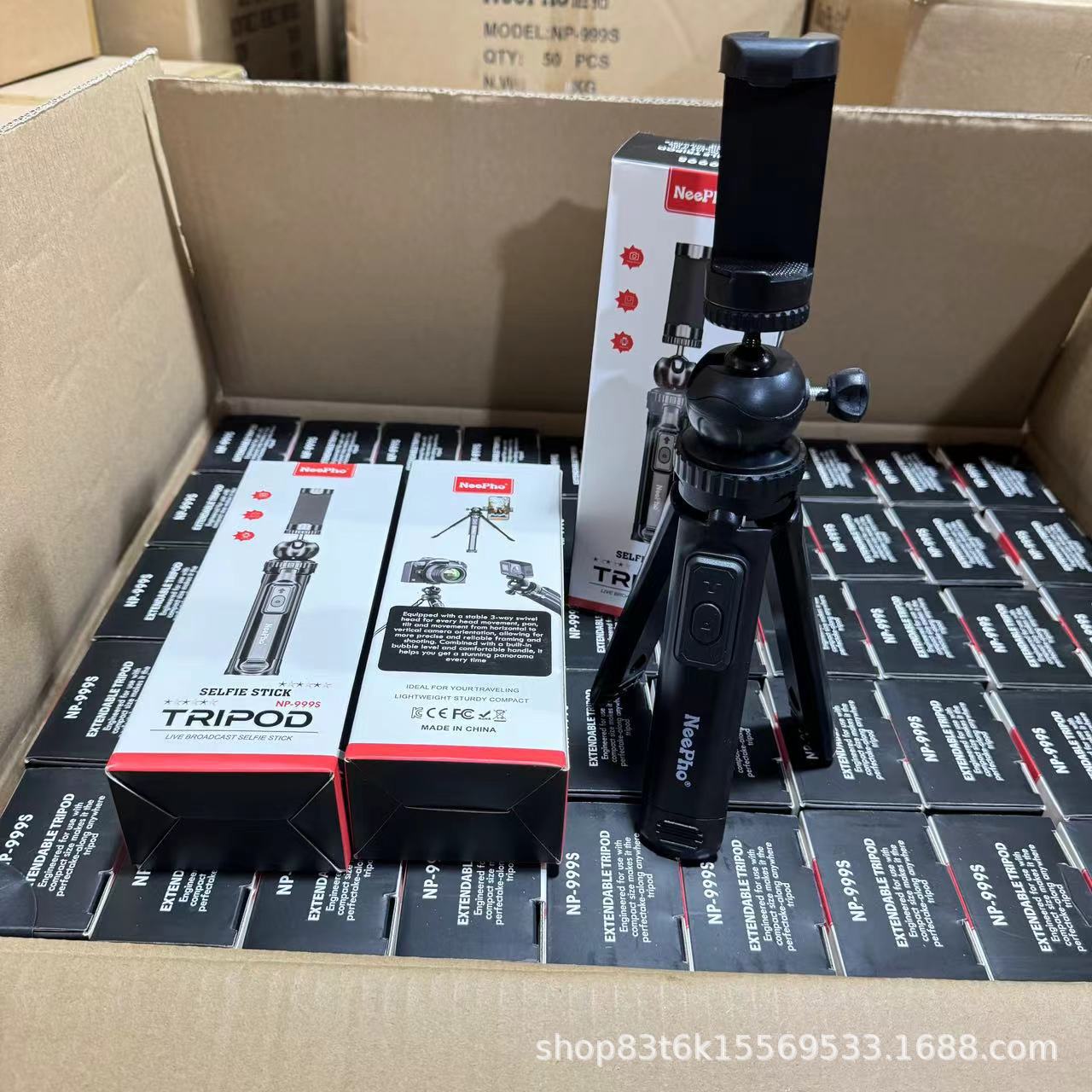 NP-999s 휴대 전화 데스크톱 채우기 가벼운 삼각대 텔레스코픽 휴대용 라이브 방송 브래킷 360 회전 범용 팬 틸트스토어 가기