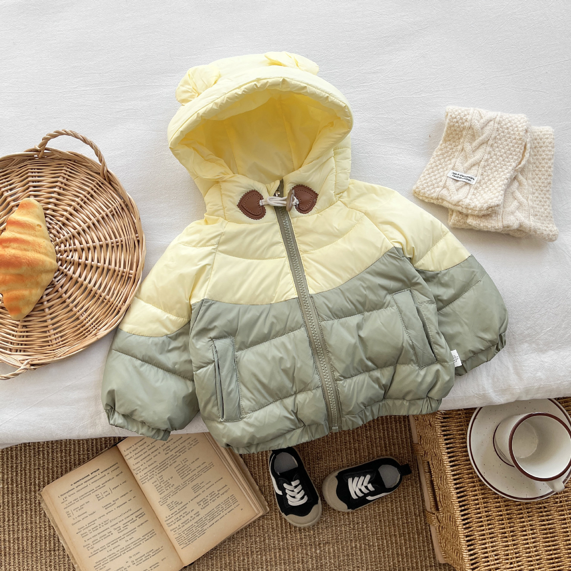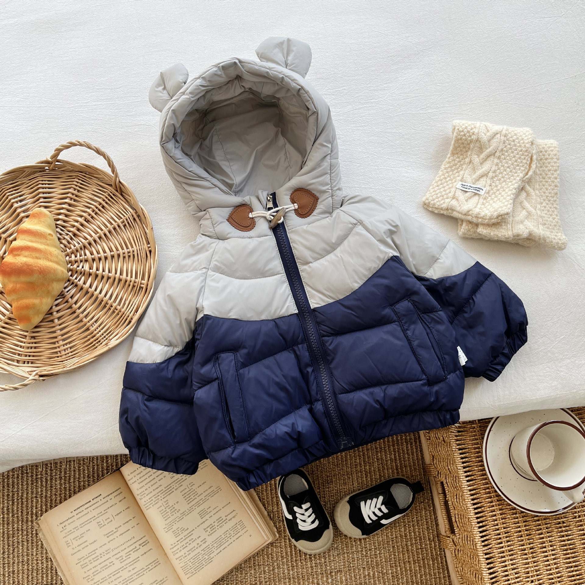 한국 스타일 아기 겨울 다운 재킷 소년의 명암 흰 오리 라이트 웨이트 따뜻한 재킷 서양식 아기 방한면 패딩 코트