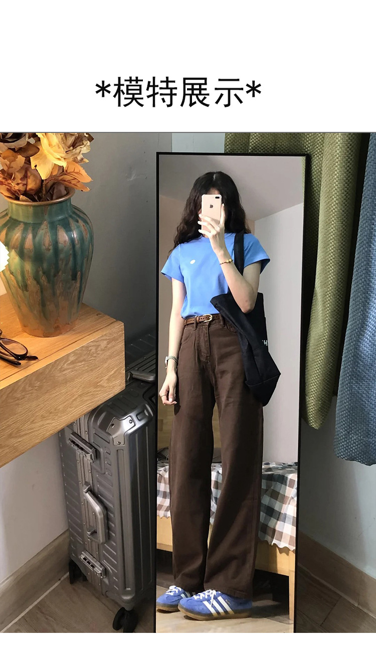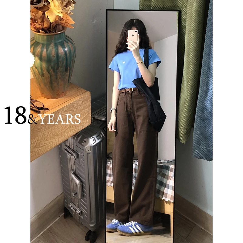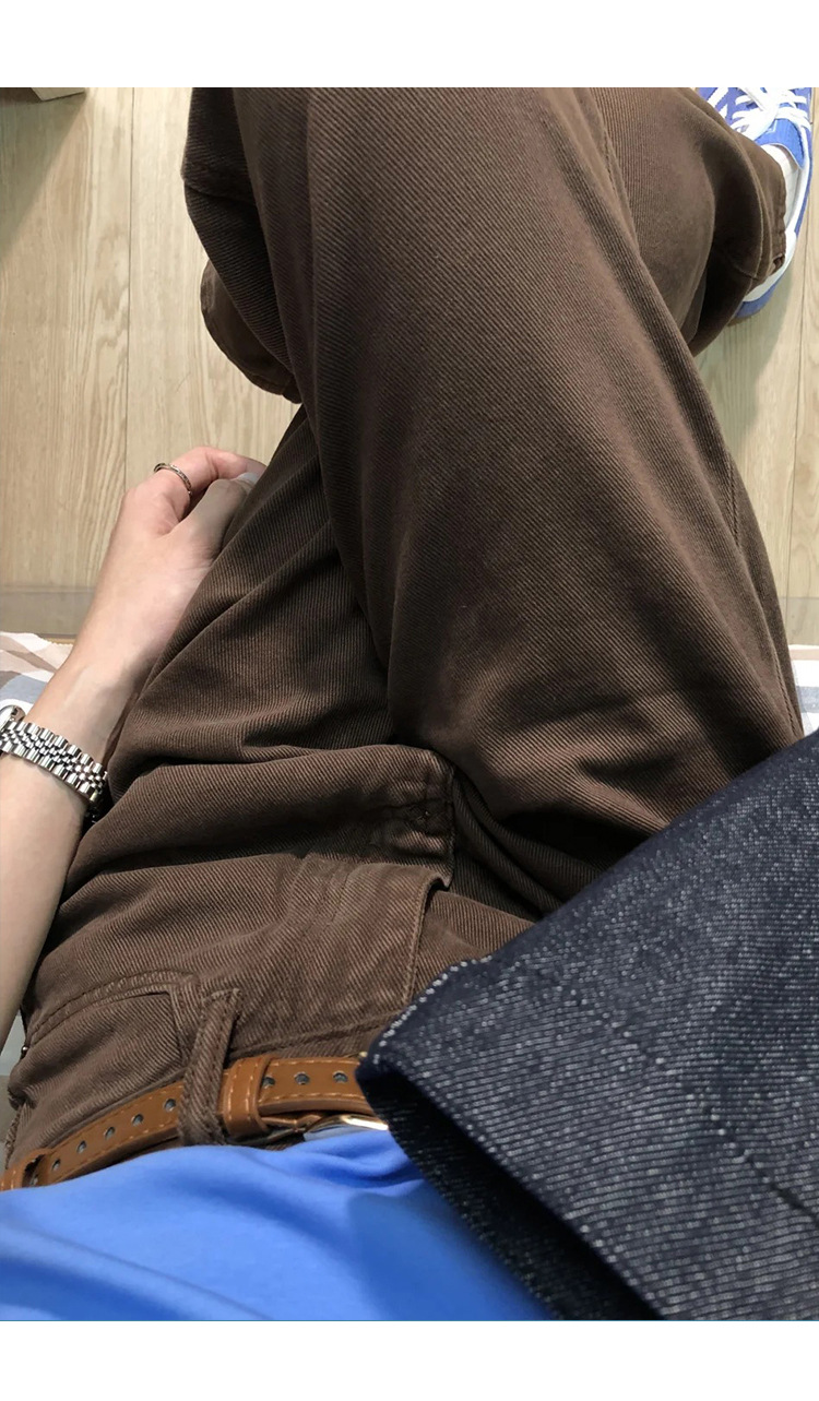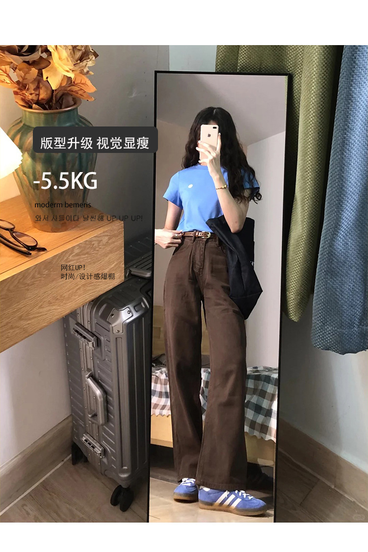 빈티지 다크 브라운 좁은 넓은 다리 청바지 여성의 2024 가을 및 겨울 새로운 다크 브라운 높은 허리 느슨한 스트레이트 바지스토어 가기