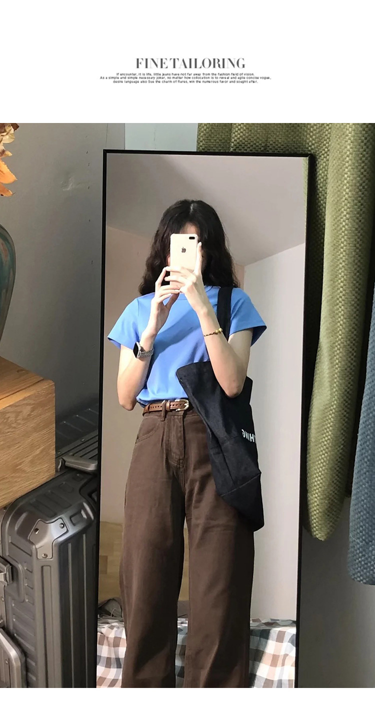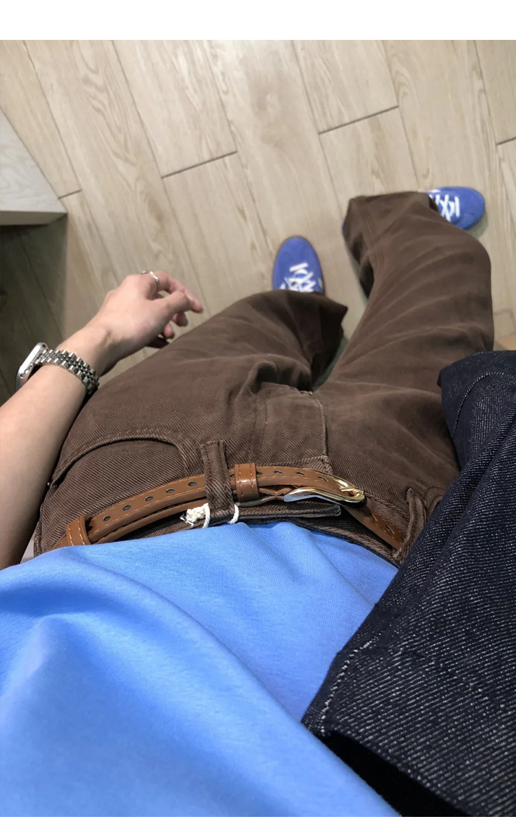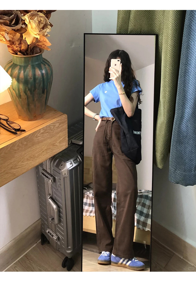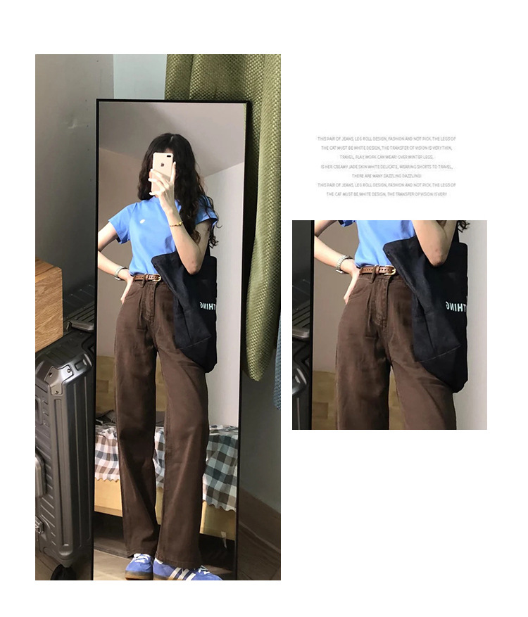 빈티지 다크 브라운 좁은 넓은 다리 청바지 여성의 2024 가을 및 겨울 새로운 다크 브라운 높은 허리 느슨한 스트레이트 바지스토어 가기