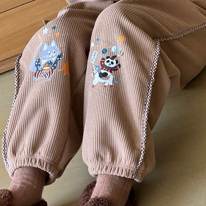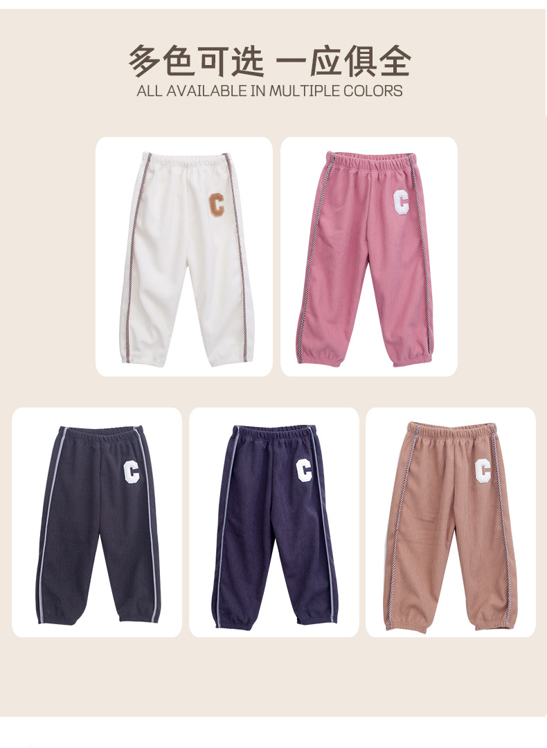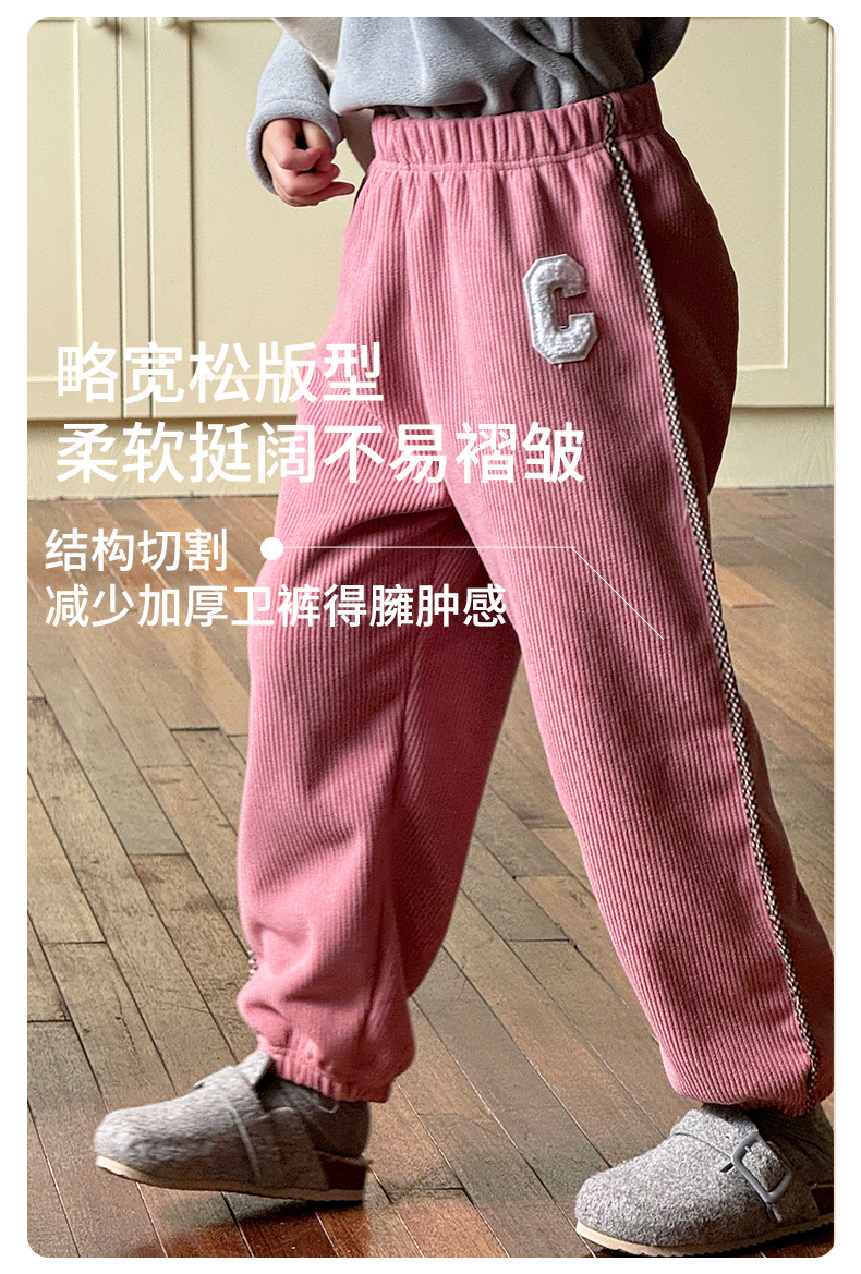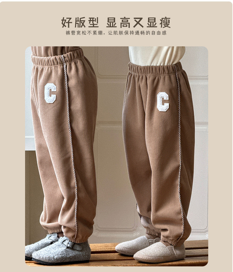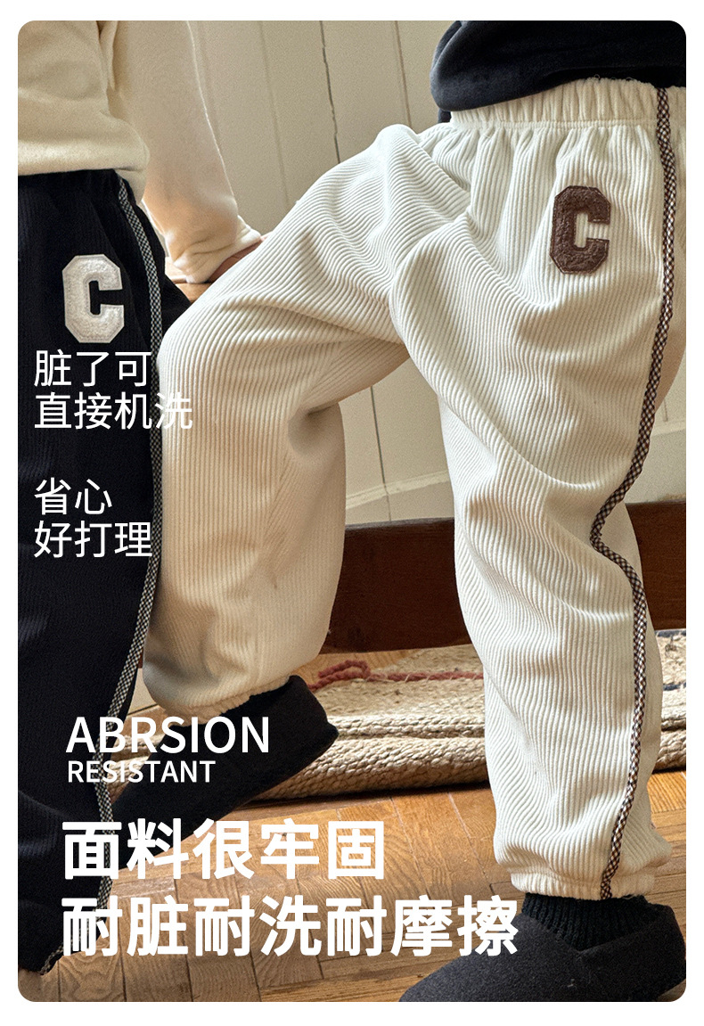 가을과 겨울 새로운 어린이 스포츠 캐주얼 바지 소년 기모 두꺼운 나사 바지 중소 소녀 발 따뜻한 바지
