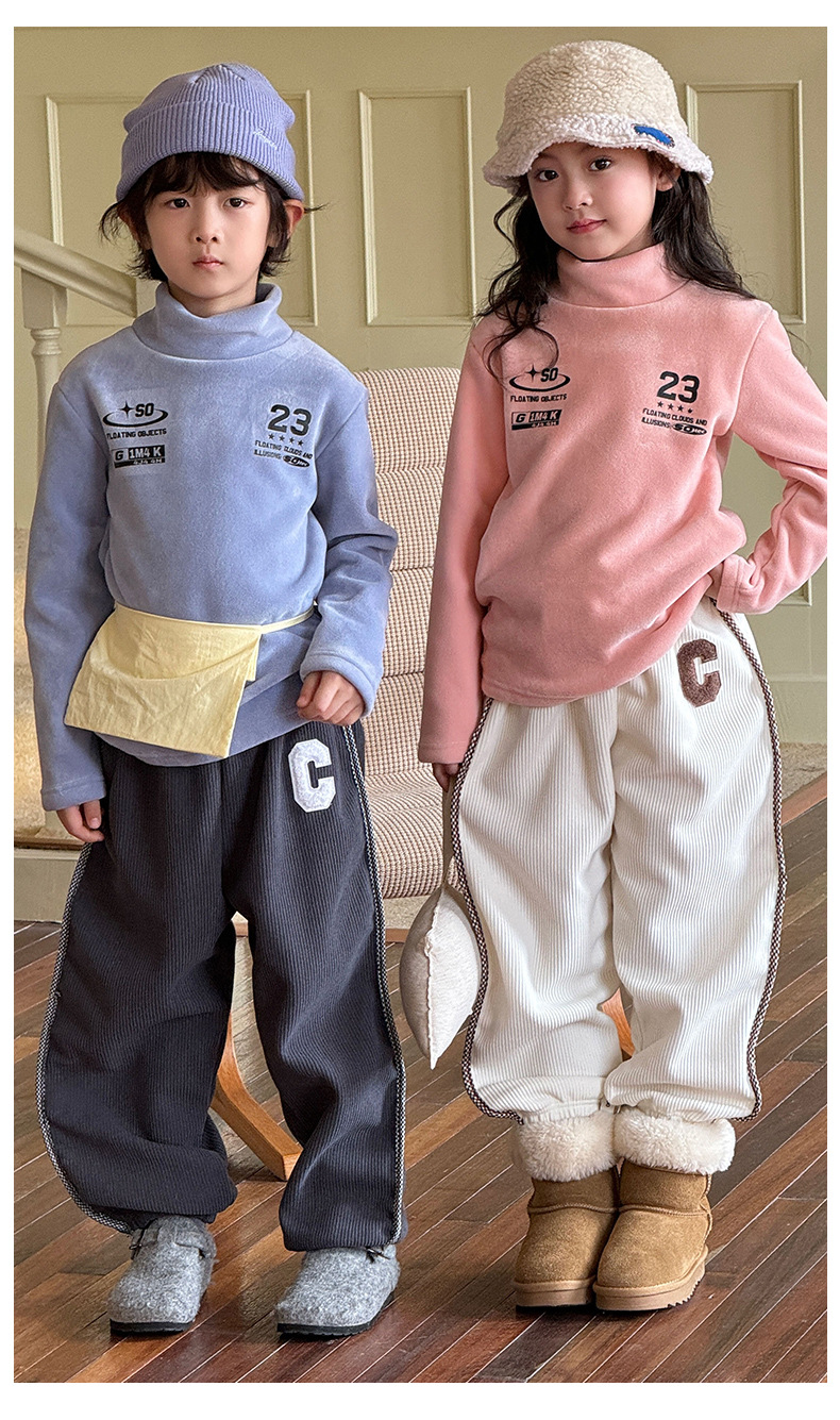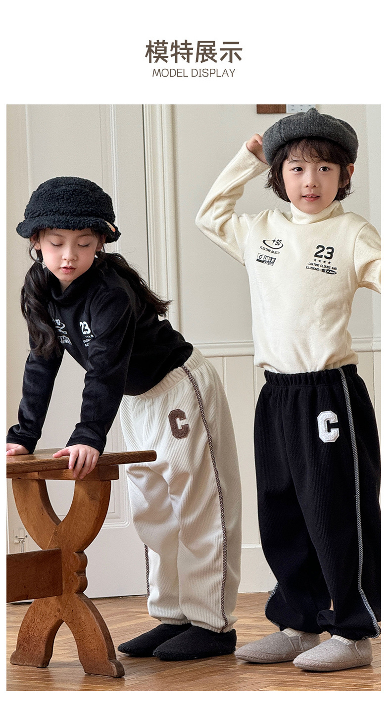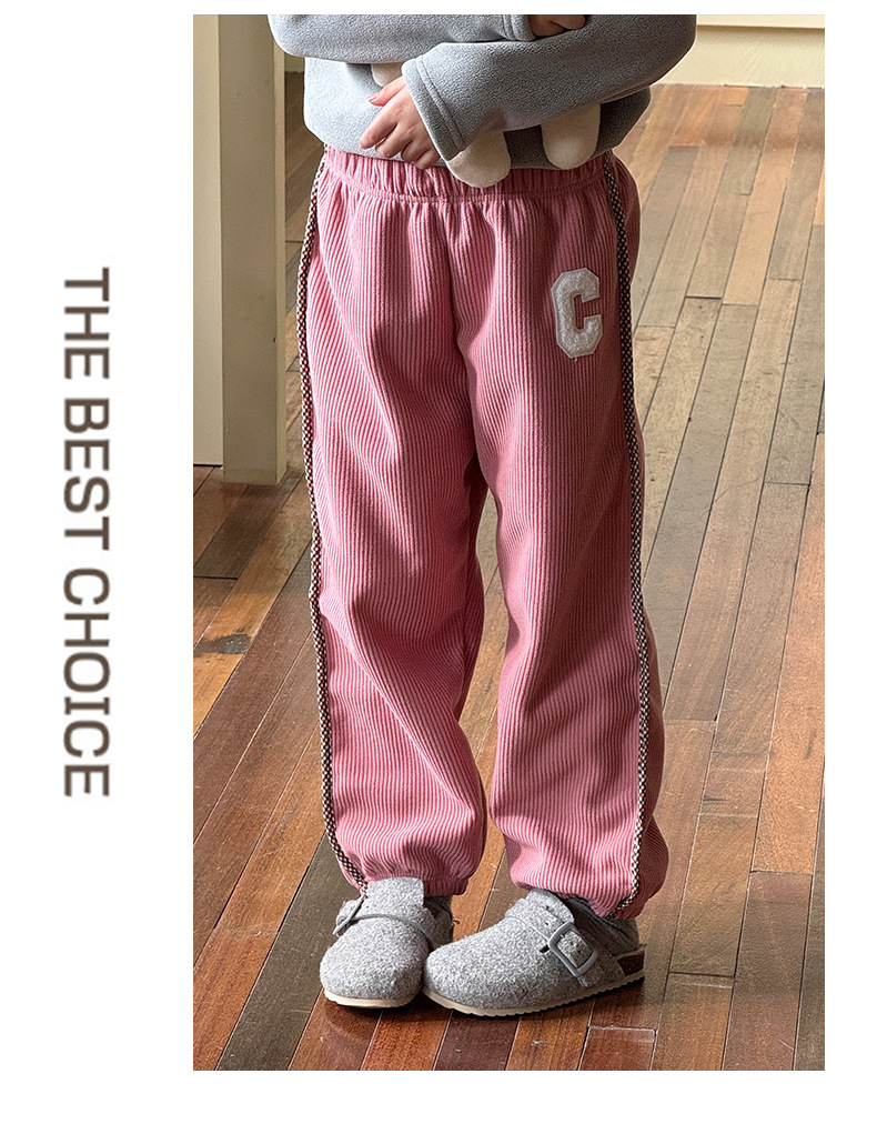 가을과 겨울 새로운 어린이 스포츠 캐주얼 바지 소년 기모 두꺼운 나사 바지 중소 소녀 발 따뜻한 바지스토어 가기