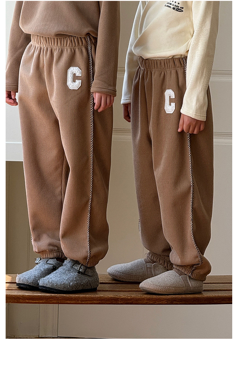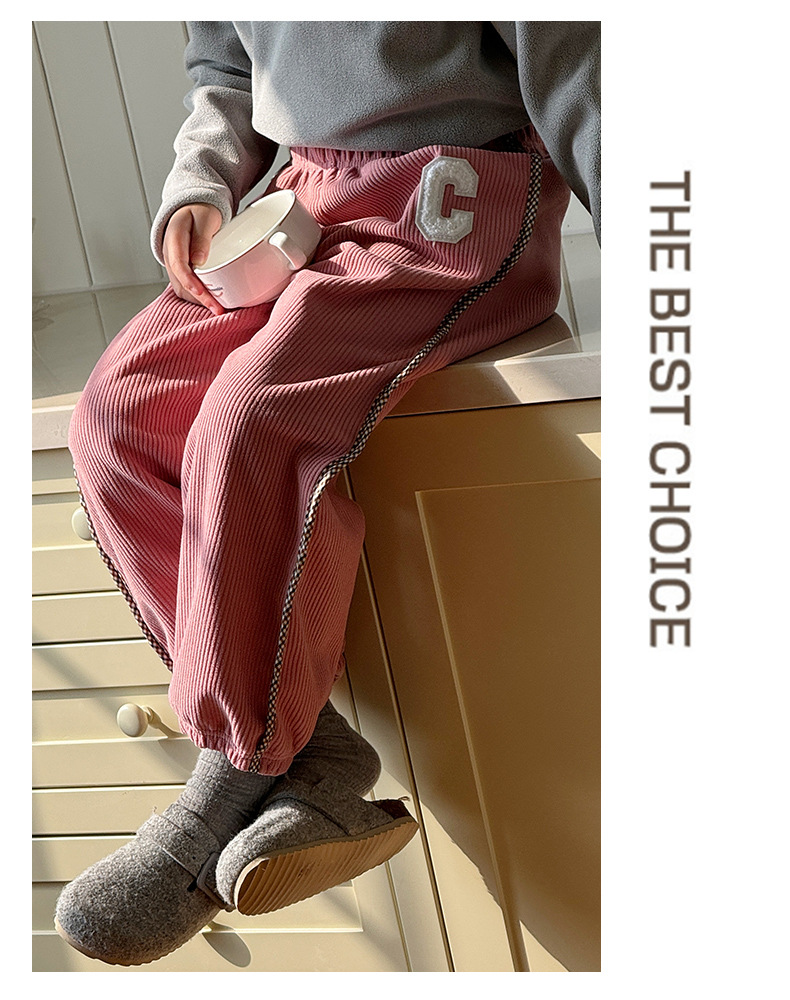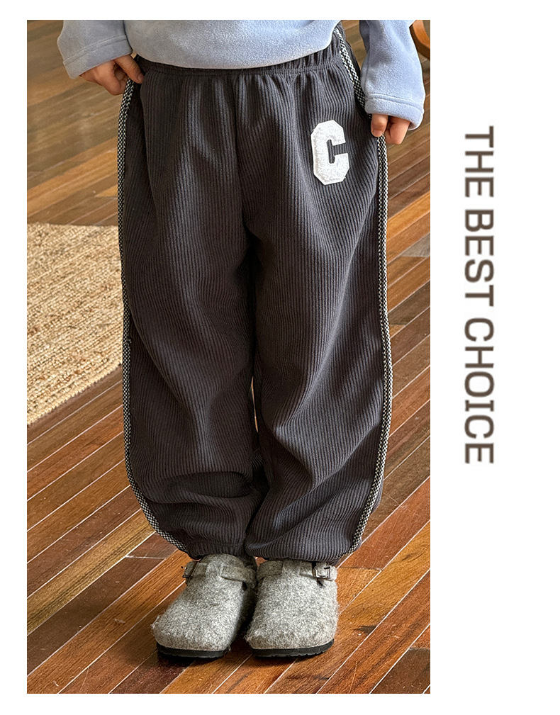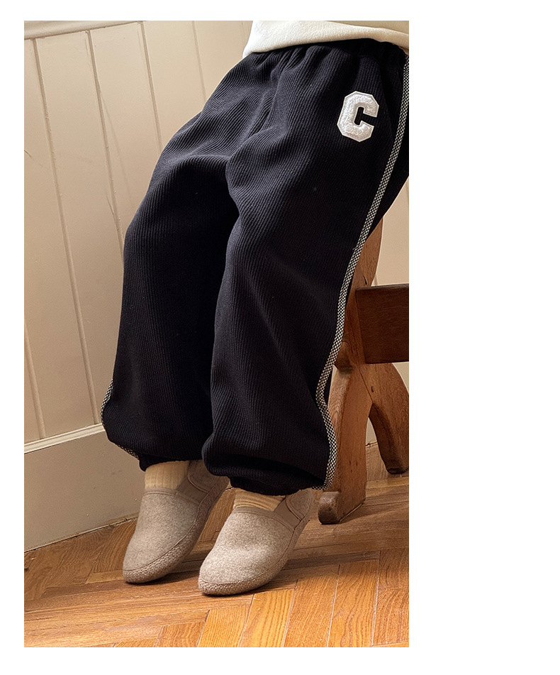 가을과 겨울 새로운 어린이 스포츠 캐주얼 바지 소년 기모 두꺼운 나사 바지 중소 소녀 발 따뜻한 바지스토어 가기
