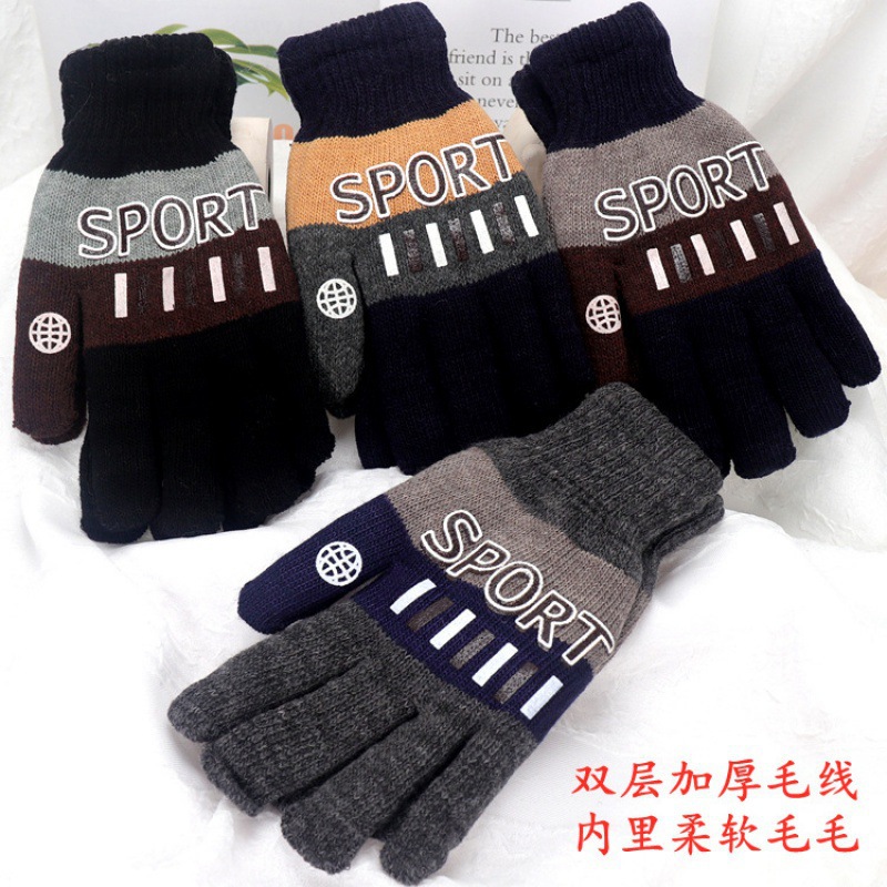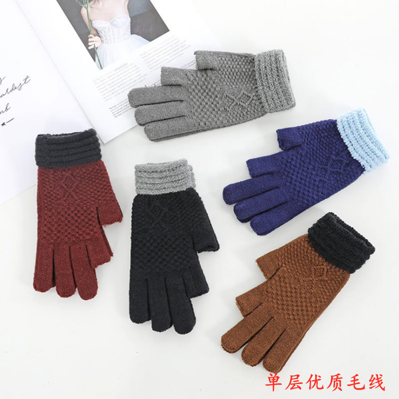 학생들이 따뜻한 전체 손가락 라이딩과 보풀 야외 타이핑 겨울 남성 한국어 버전을 유지할 수 있도록 두꺼운 반 손가락 라인 장갑스토어 가기