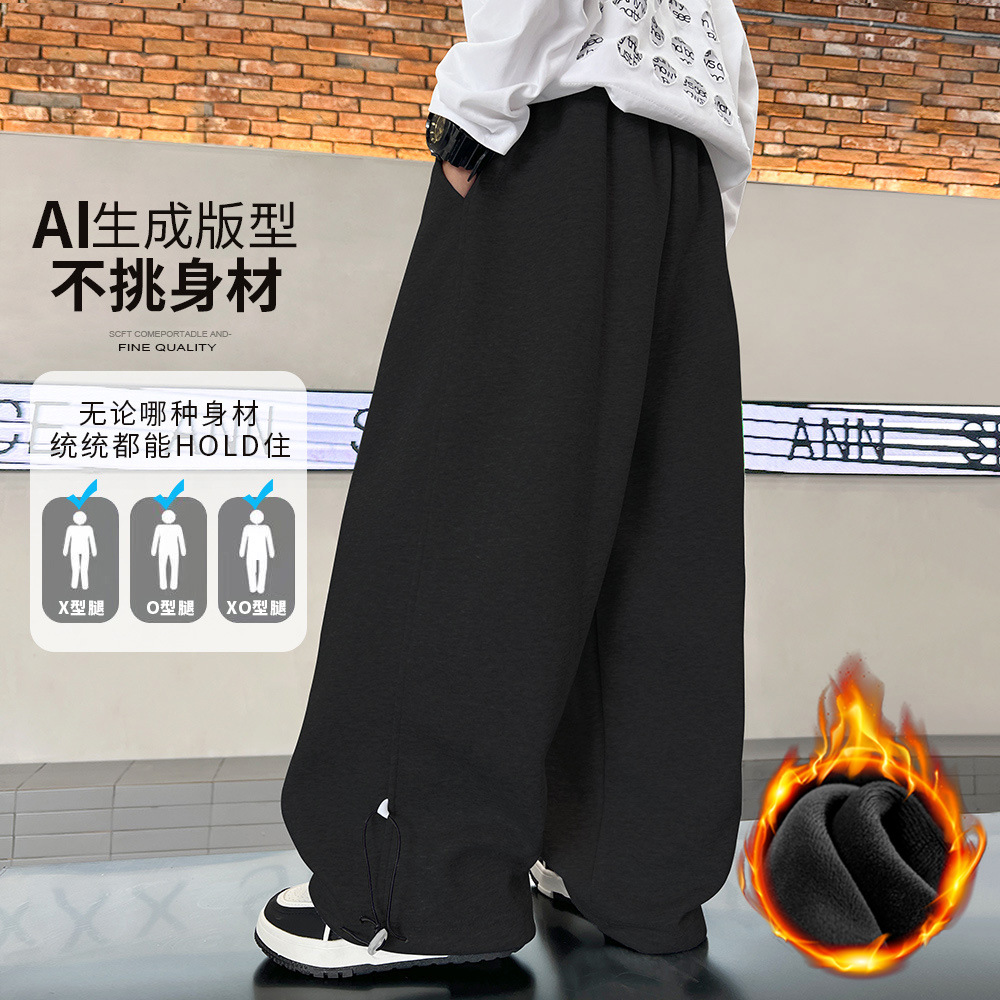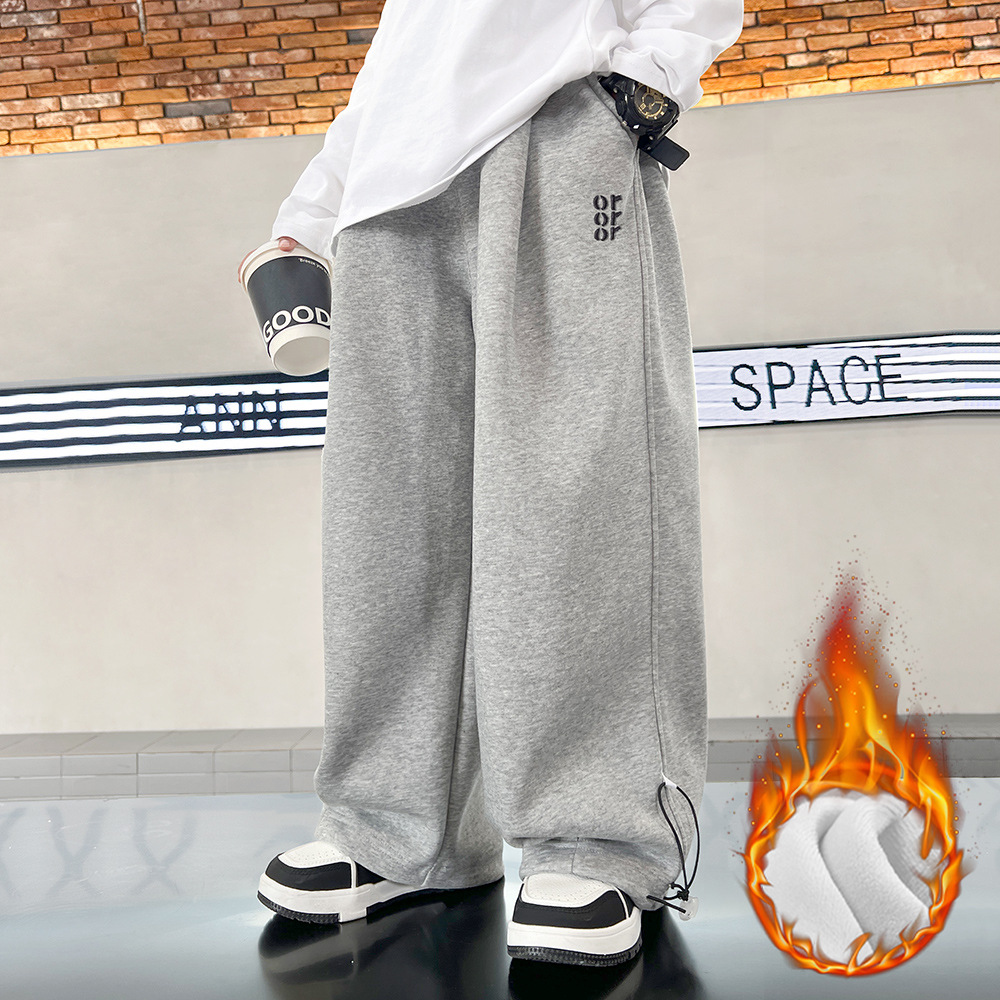 어린이 바지 어린이 바지 소년 바지 2024 가을과 겨울 새로운 니트 바지 큰 어린이 패션 기모 크레인 바지