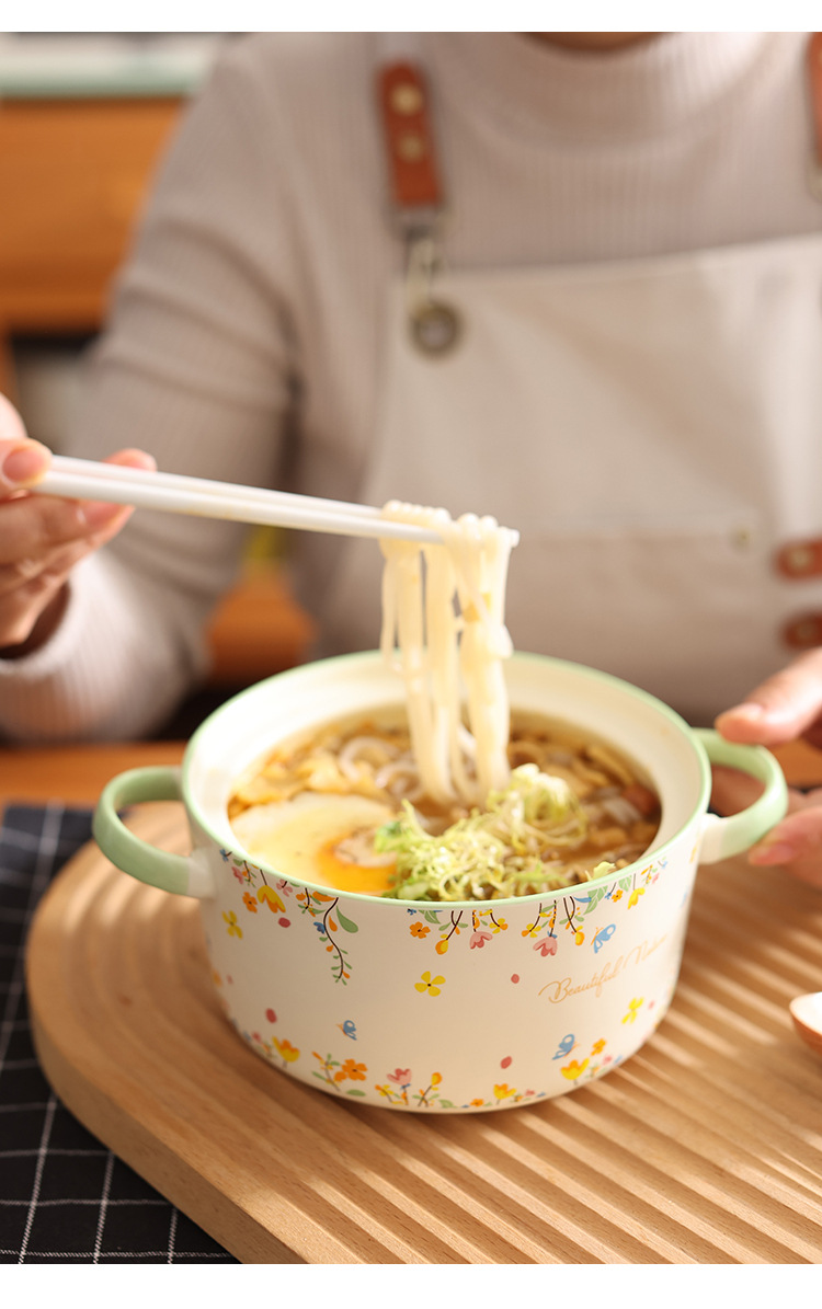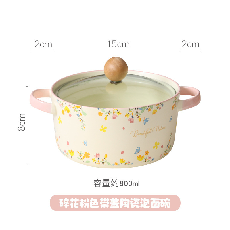 빵 전체를 넣을 수 있습니다! 가정용 학생 기숙사 인스턴트 국수 그릇을위한 뚜껑이 달린 대형 이중 귀 세라믹 즉석 국수 그릇스토어 가기