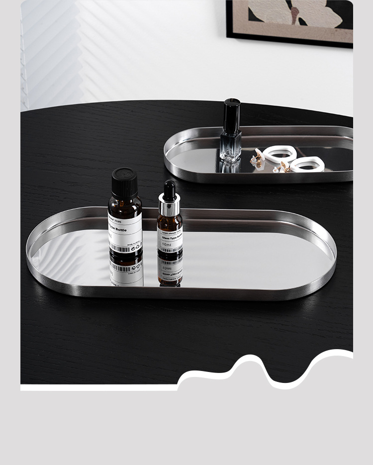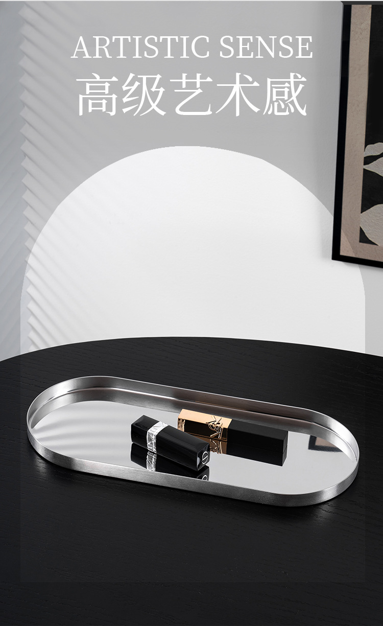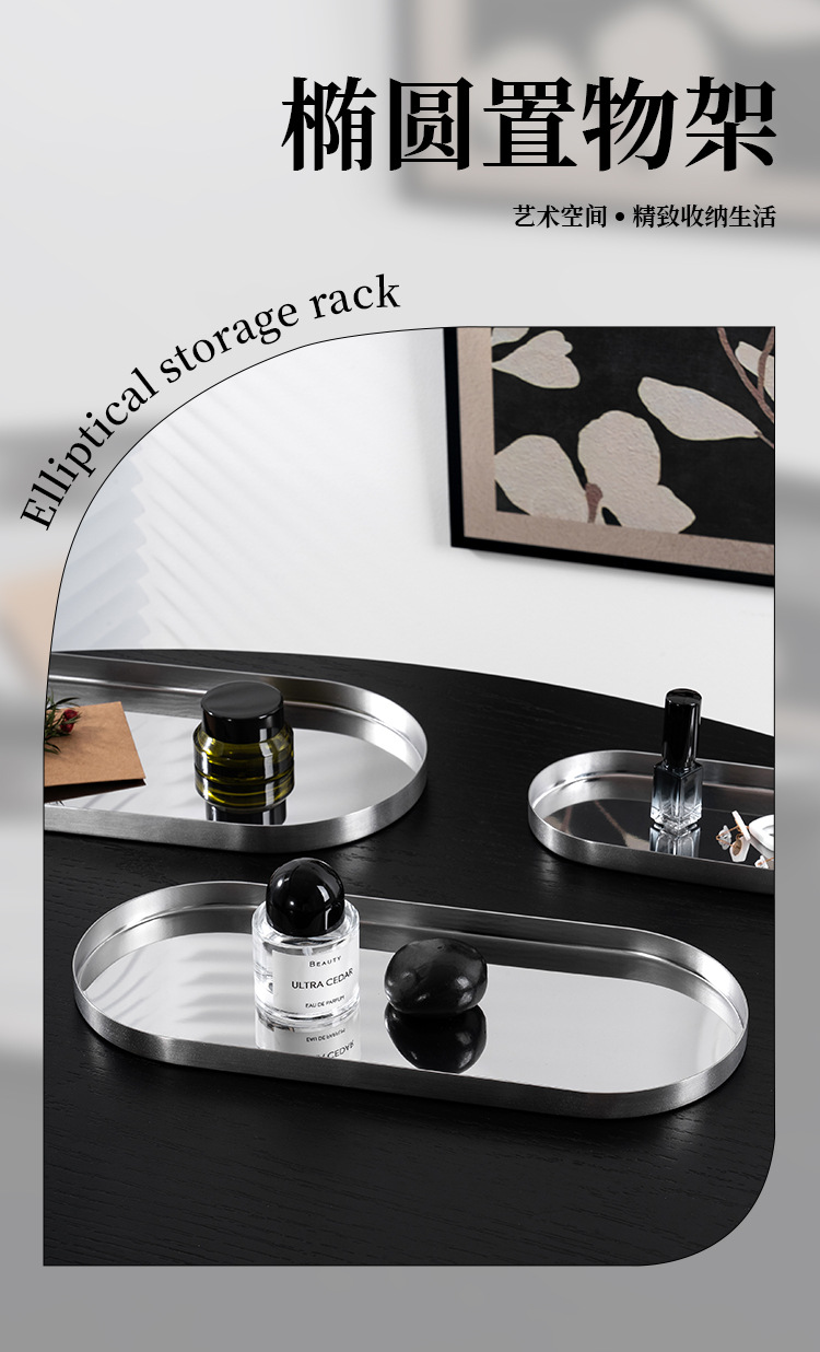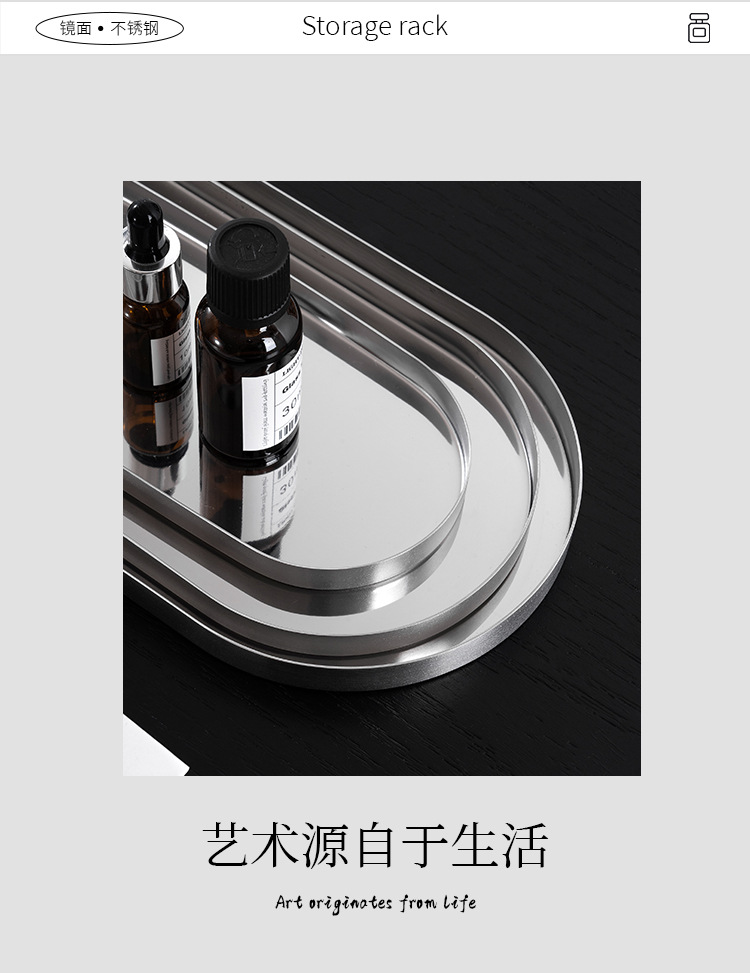 430 스테인리스 스틸 수납 트레이 직선형 타원형 아로마테라피 화장품 수납 트레이 인스 스타일 금속 장식 트레이스토어 가기