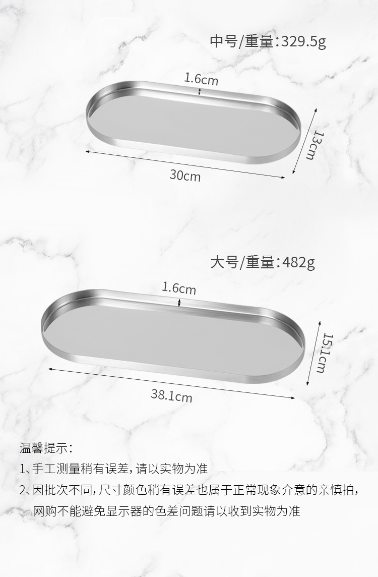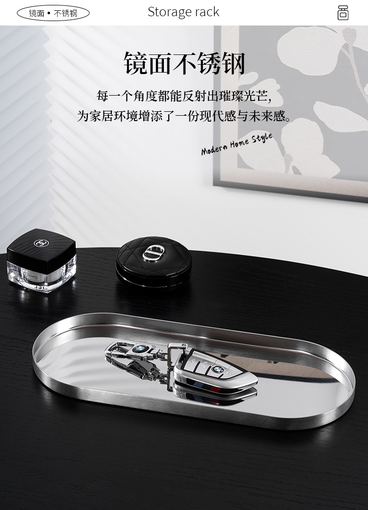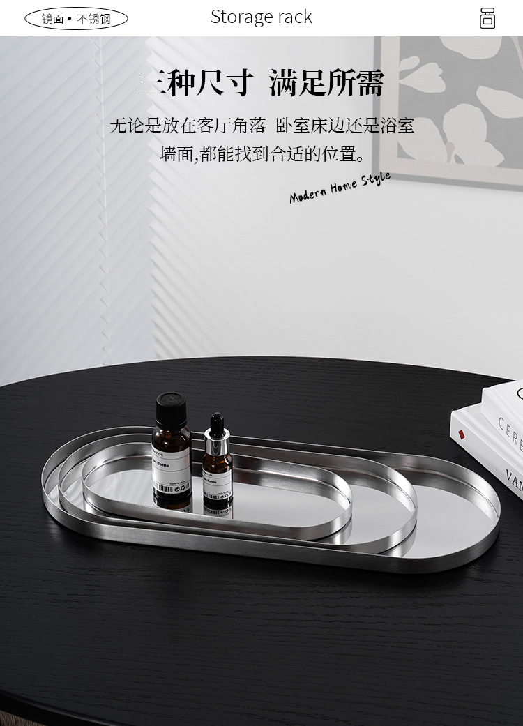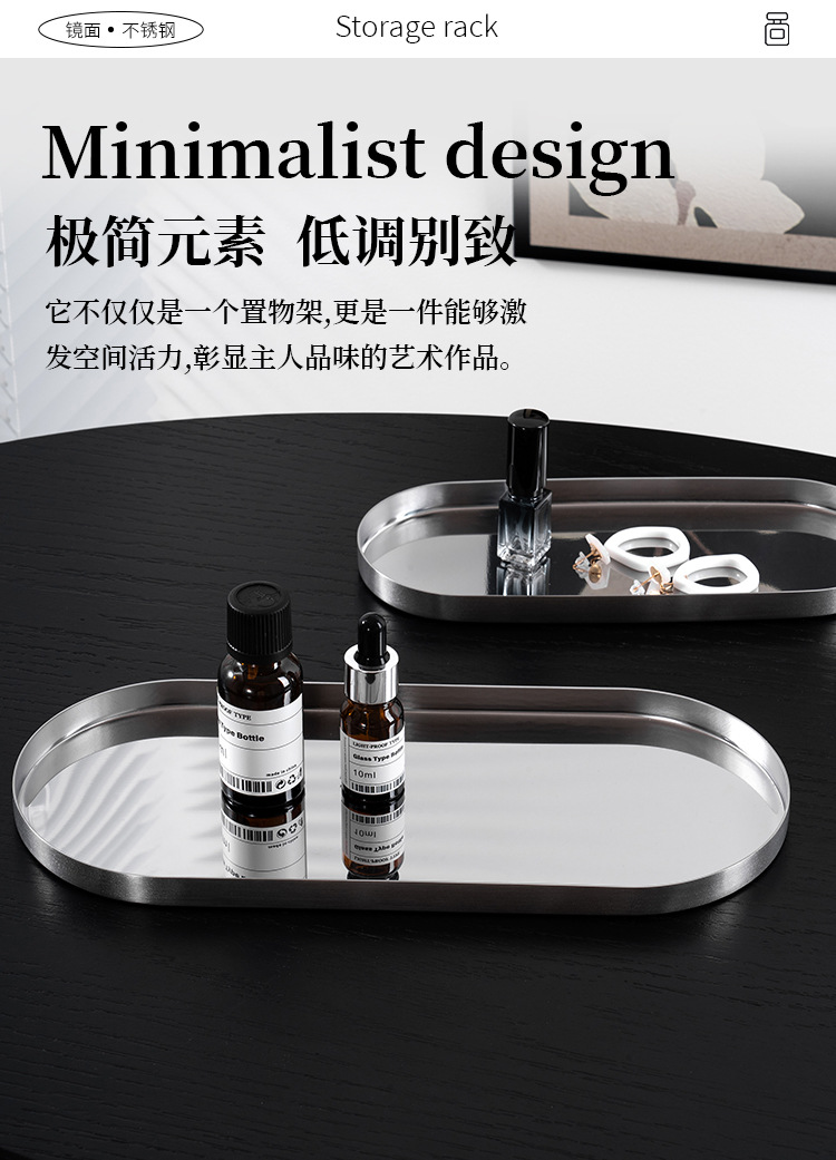 430 스테인리스 스틸 수납 트레이 직선형 타원형 아로마테라피 화장품 수납 트레이 인스 스타일 금속 장식 트레이스토어 가기