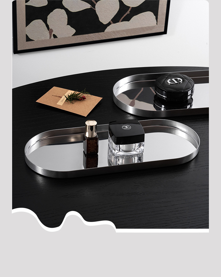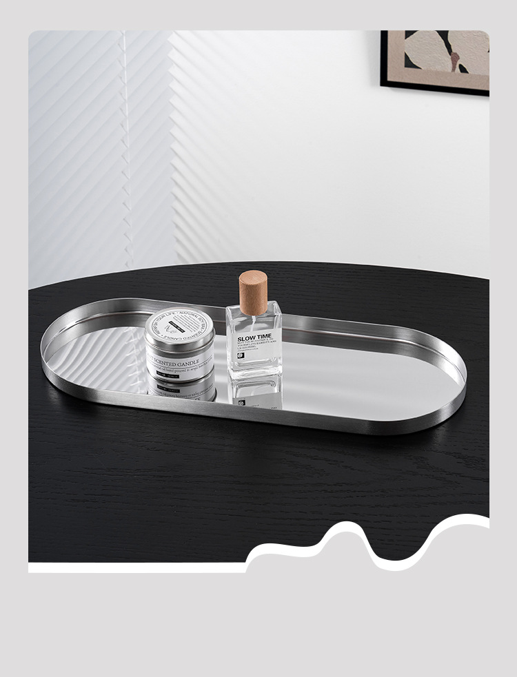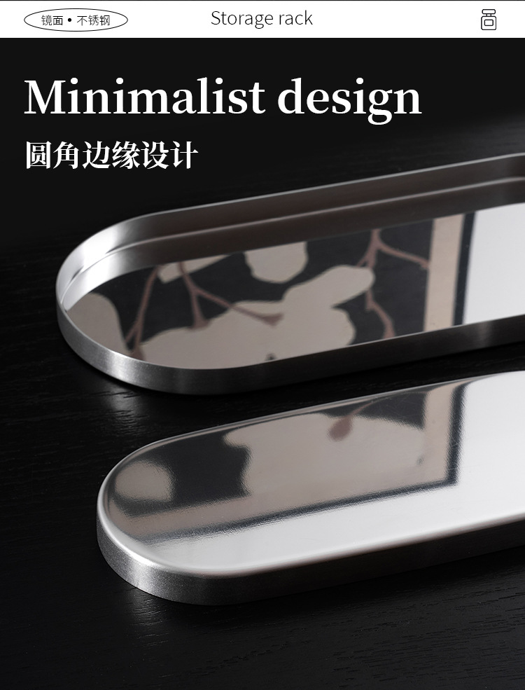 430 스테인리스 스틸 수납 트레이 직선형 타원형 아로마테라피 화장품 수납 트레이 인스 스타일 금속 장식 트레이