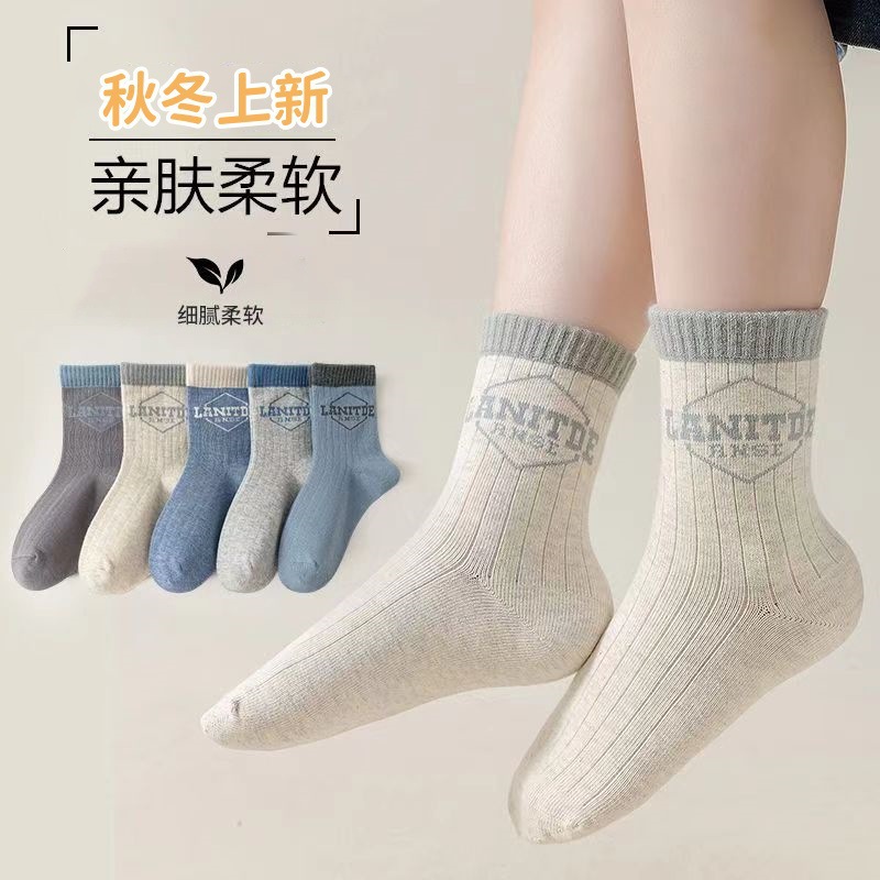 어린이 양말 봄과 가을 편지 중간 길이 양말 소년 뼈없는 땀 흡수 스타킹 중간 크기 어린이 가을 및 겨울 냄새 방지 스포츠 양말