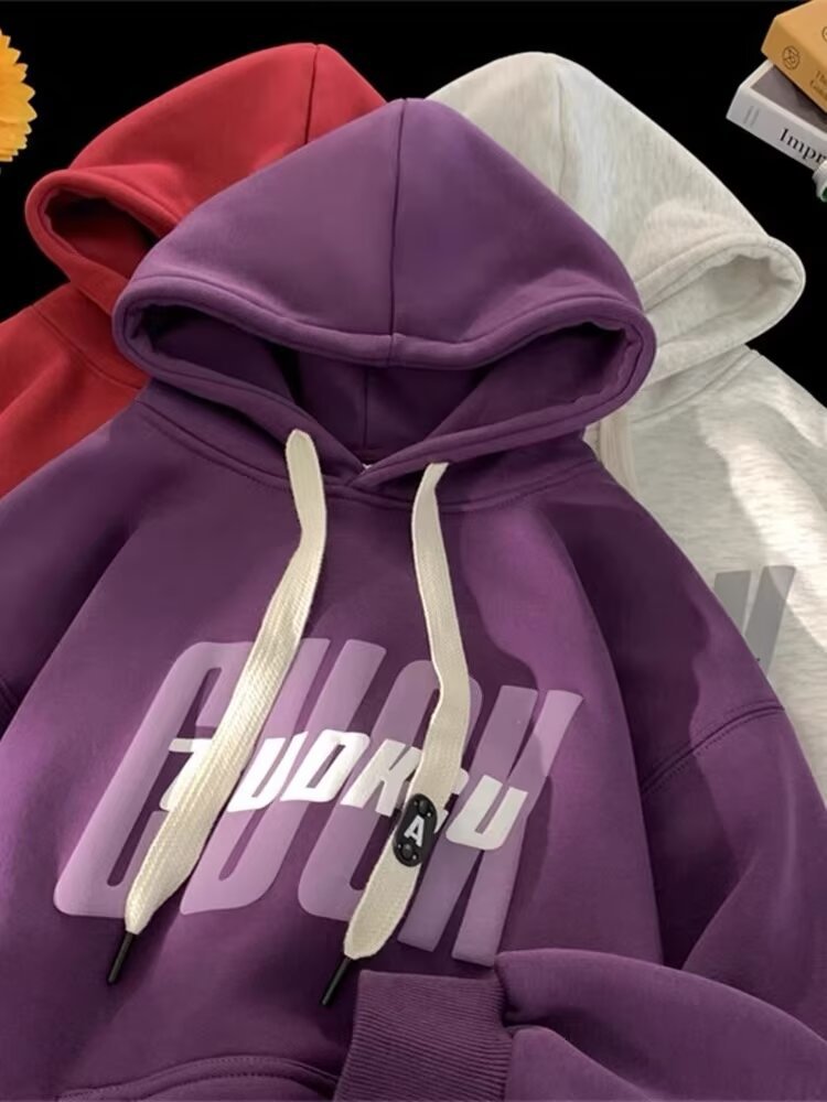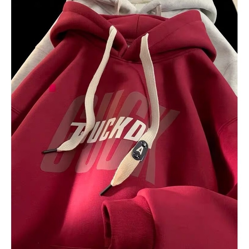 안티 필링 코튼 후드 스웨터 남성 봄과 가을 미국 패션 브랜드 청소년 버건디 헤비 기모 후디 재킷스토어 가기