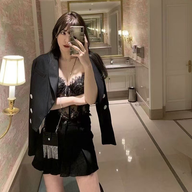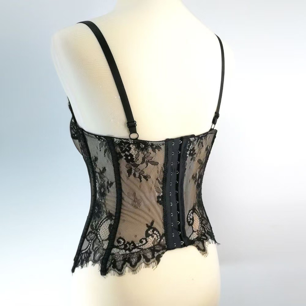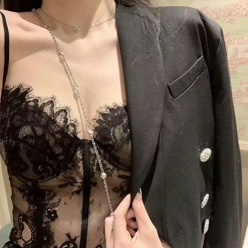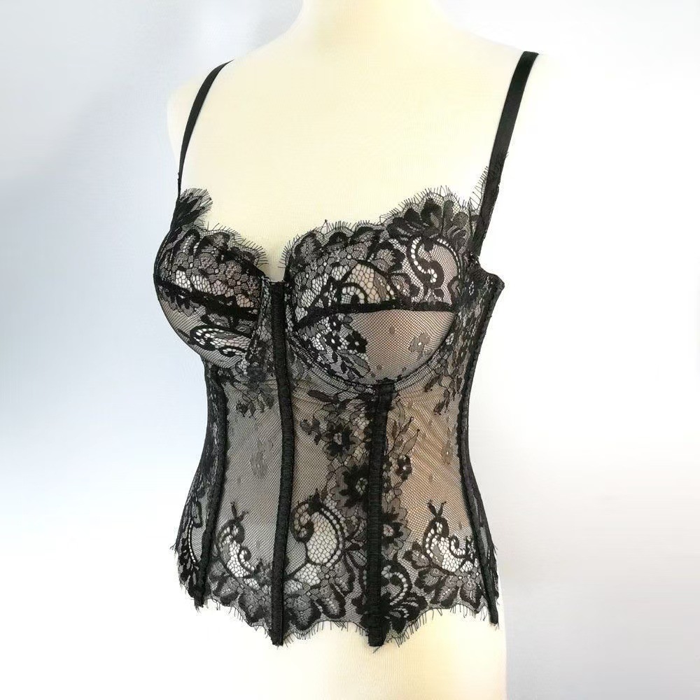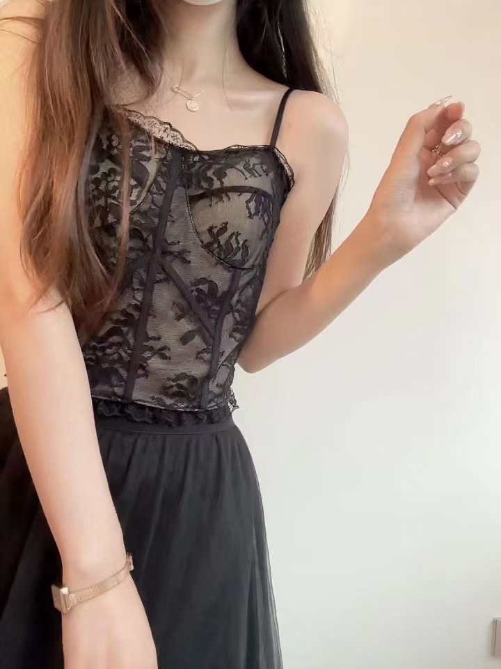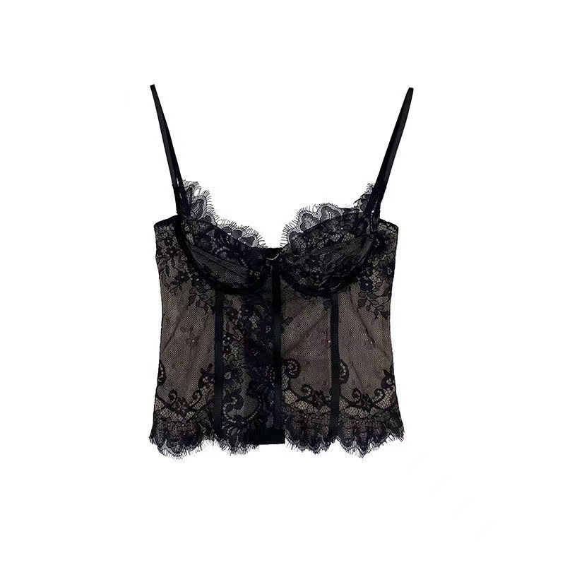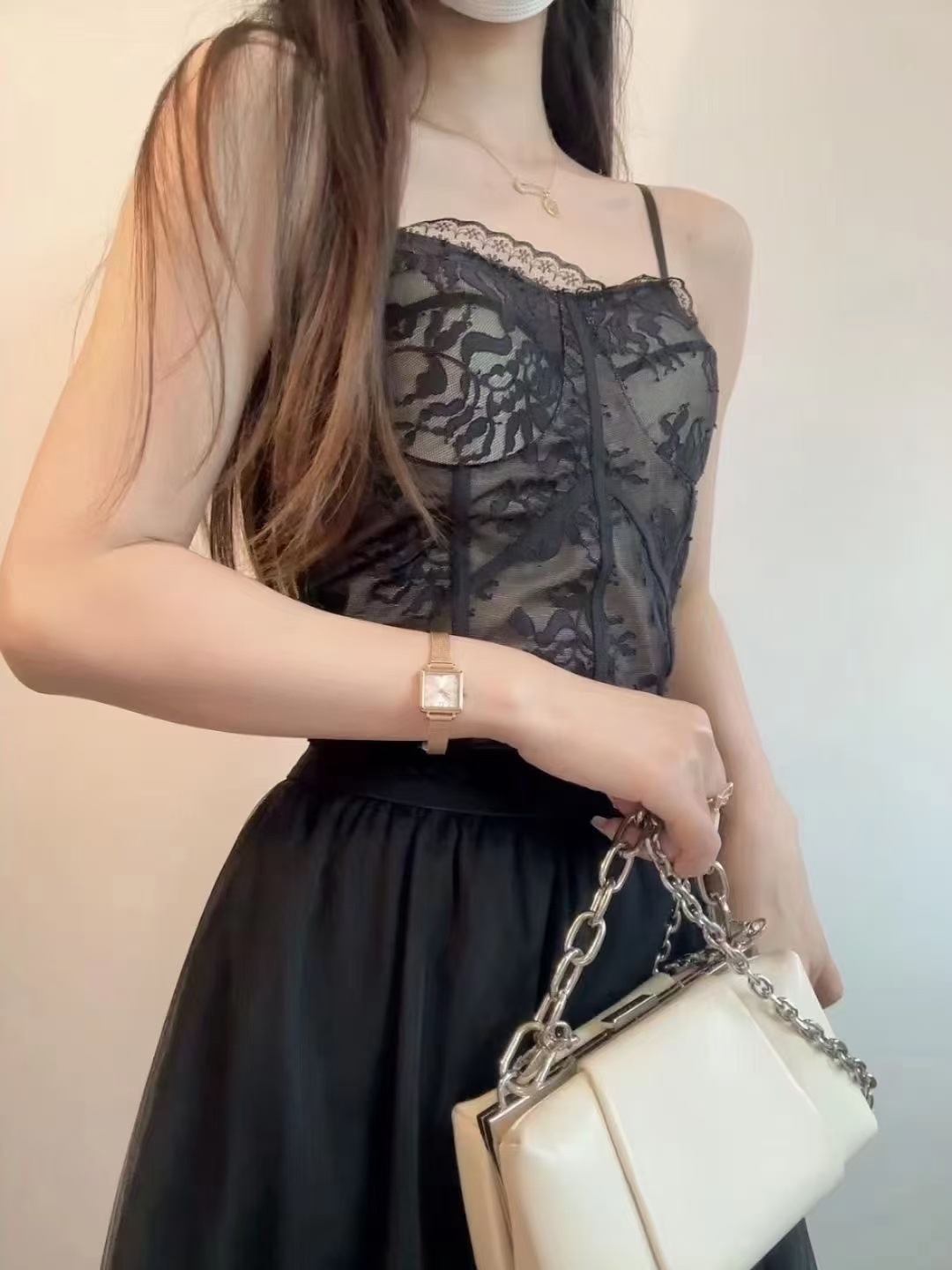 프렌치 섹시 레이스 슬립탑 속옷 겸용 탑, 허리와 가슴을 강조하는 디자인, 짧은 기장, 외출복으로도 활용 가능, 우아한 스타일