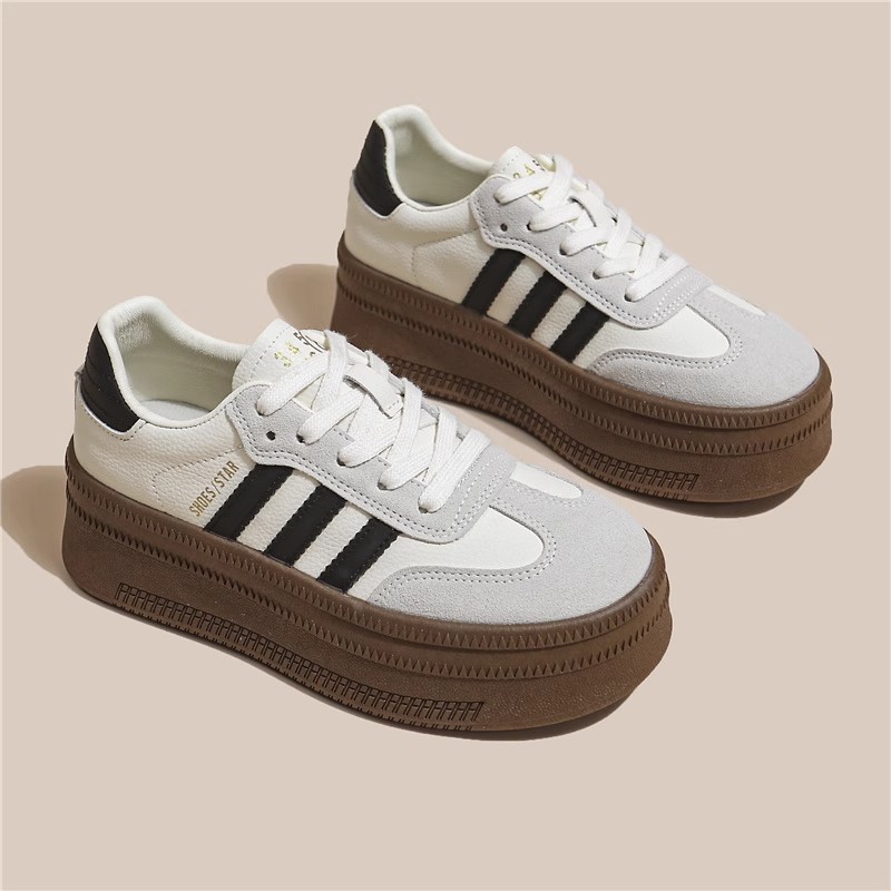 정품 가죽 데쿠티 신발 여성용 다용도 두꺼운 밑창 키높이 화이트 슈즈 2025 봄 신상 부드러운 밑창 캐주얼 운동화스토어 가기