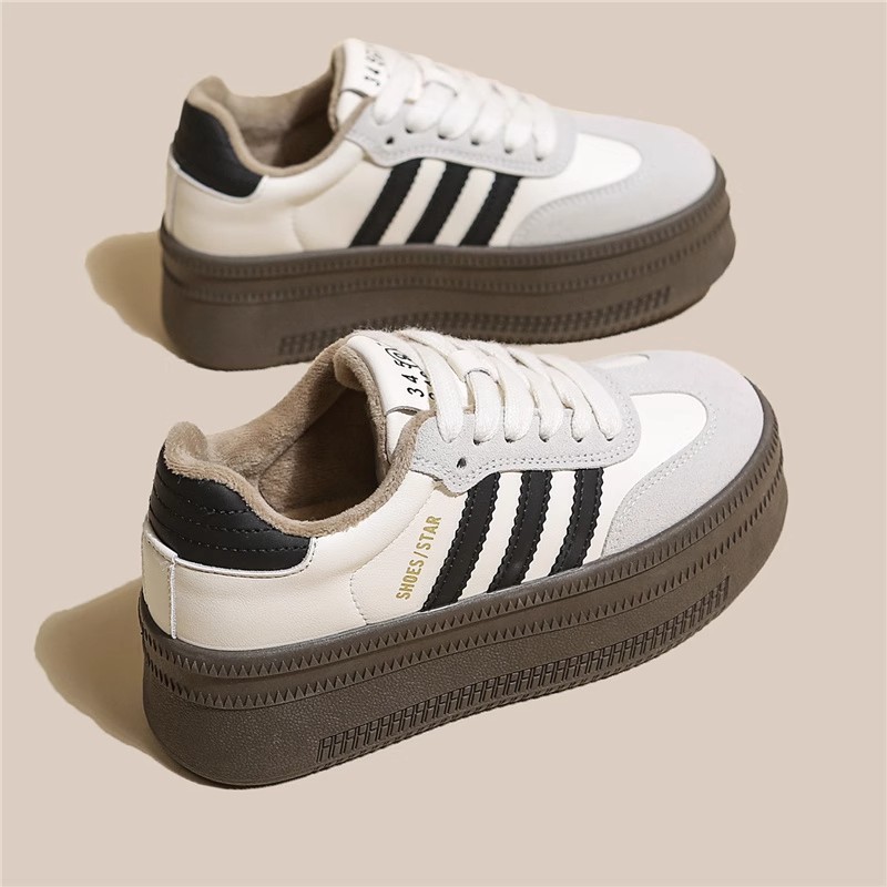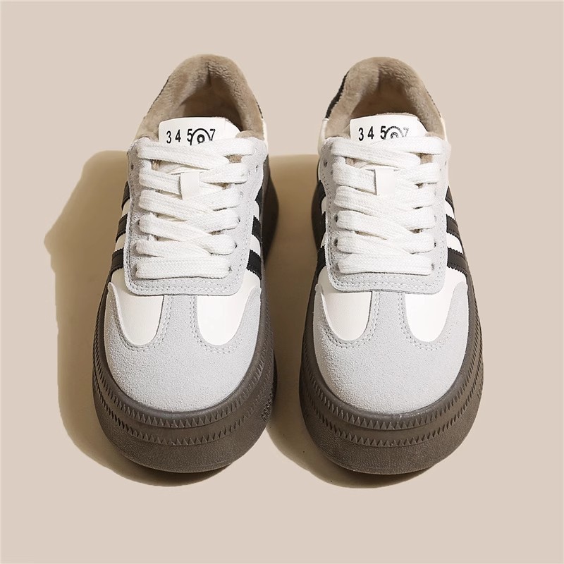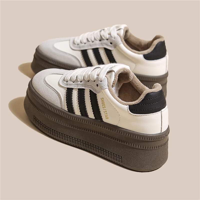 정품 가죽 데쿠티 신발 여성용 다용도 두꺼운 밑창 키높이 화이트 슈즈 2025 봄 신상 부드러운 밑창 캐주얼 운동화
