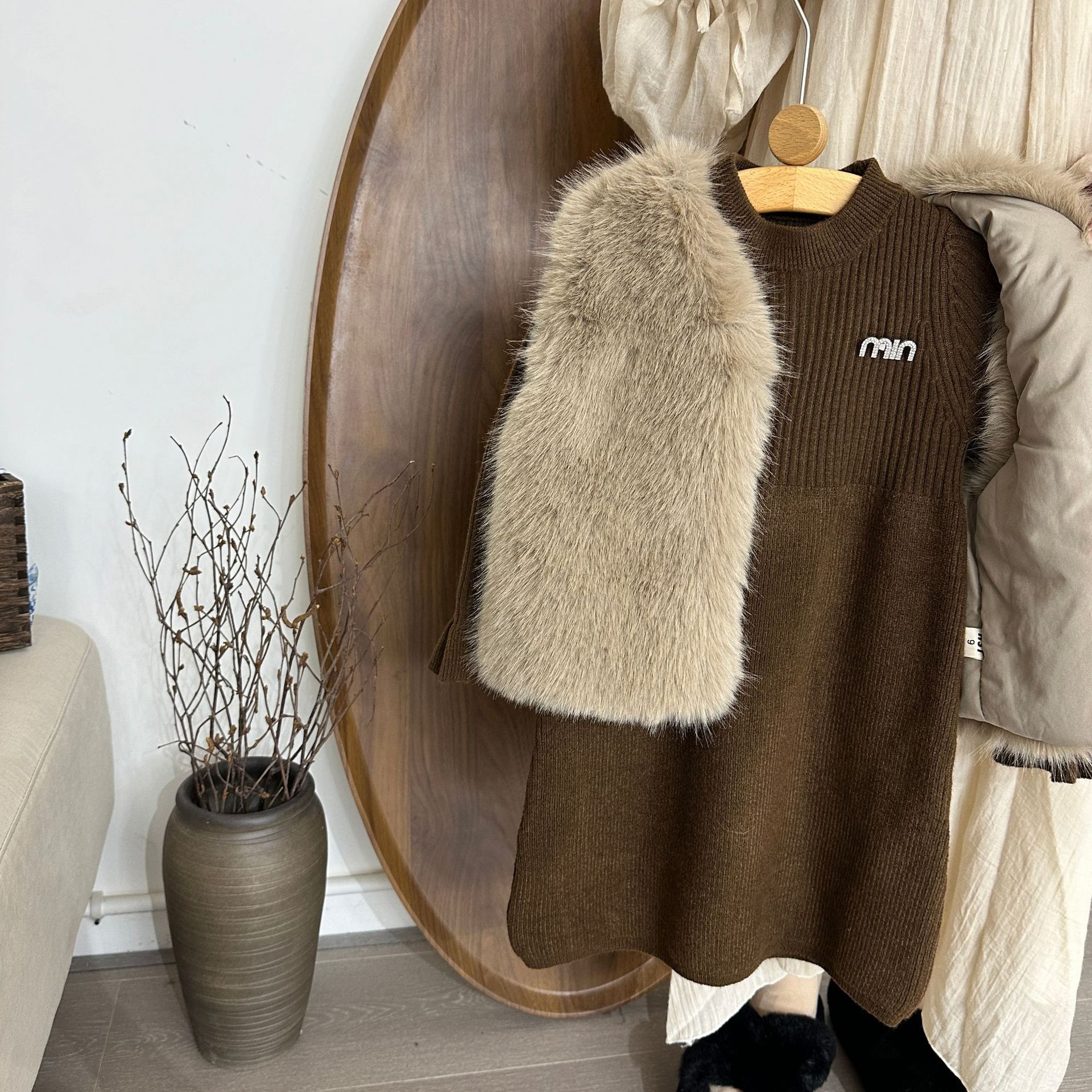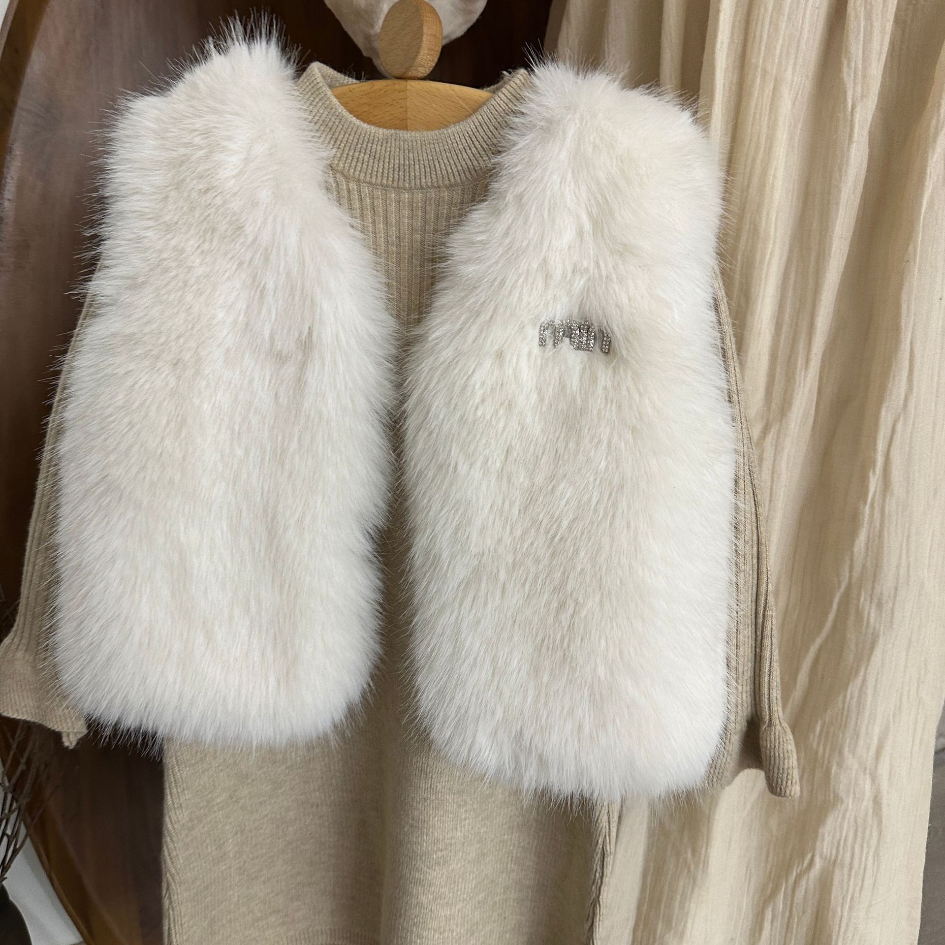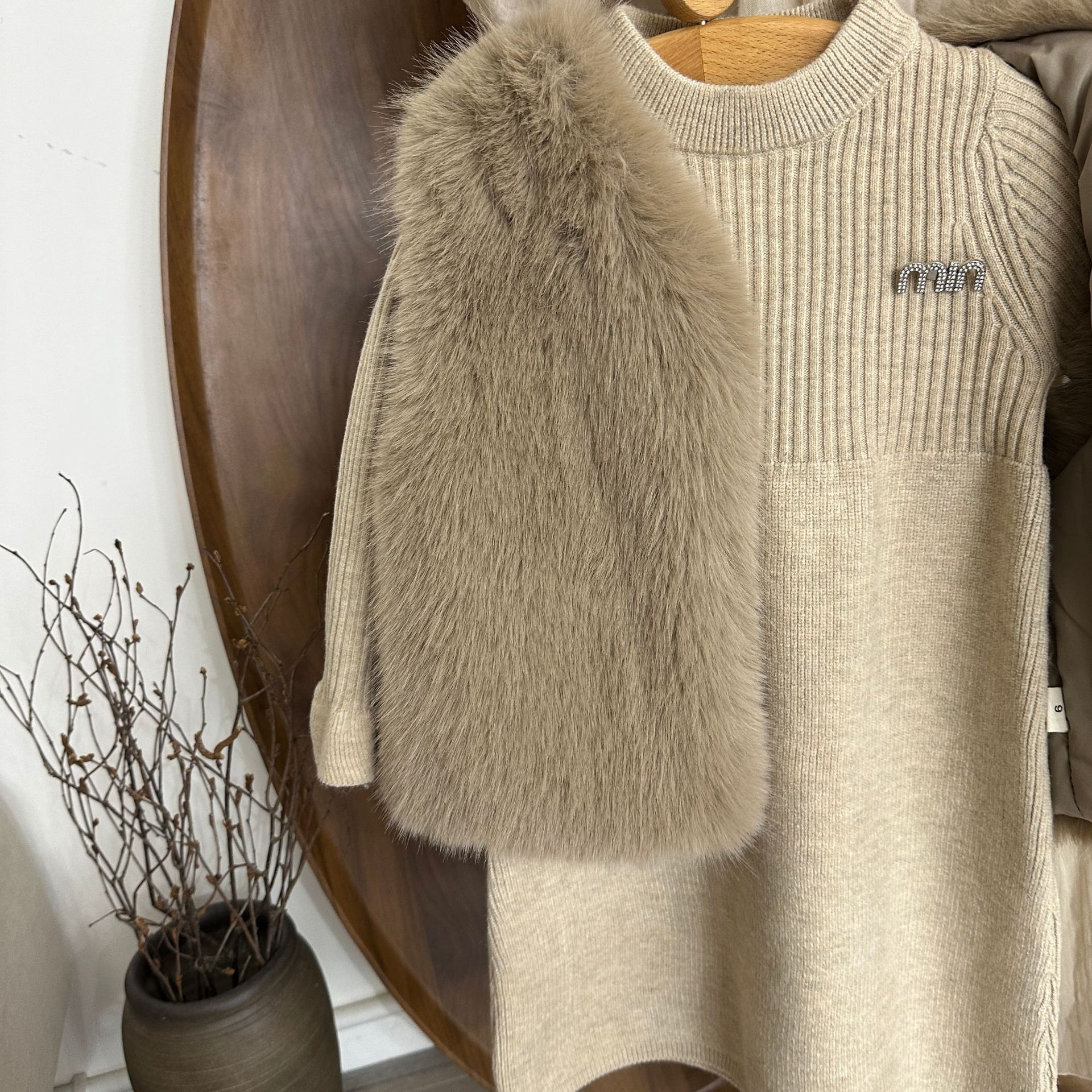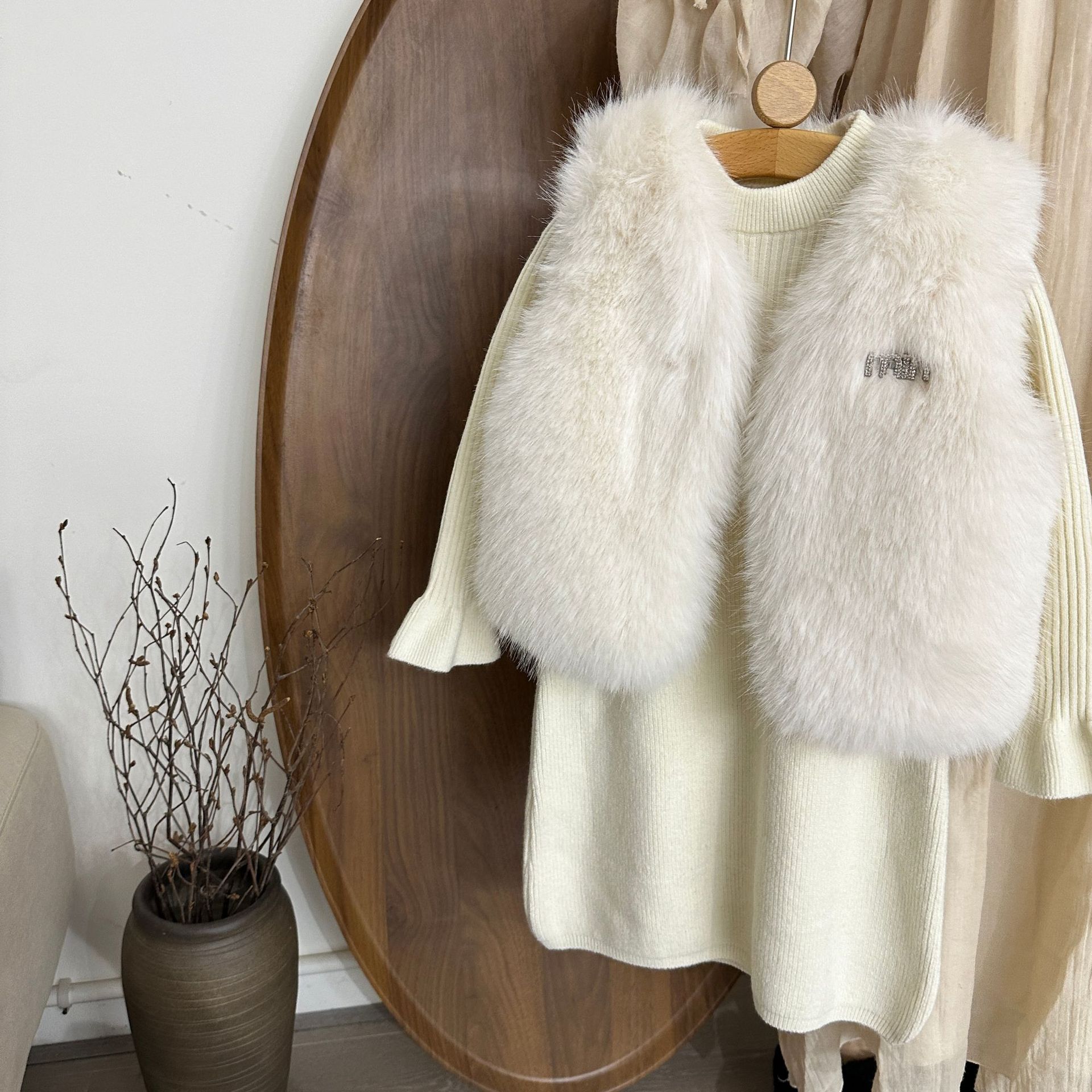 여자 모피 조끼 25 가을, 겨울 새 아기 한국어 버전 솔리드 컬러 모피 조끼 스웨터 드레스 투피스 유행 세트스토어 가기
