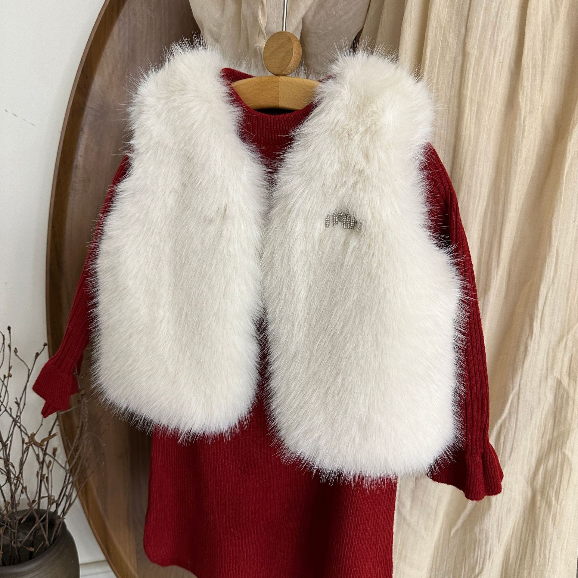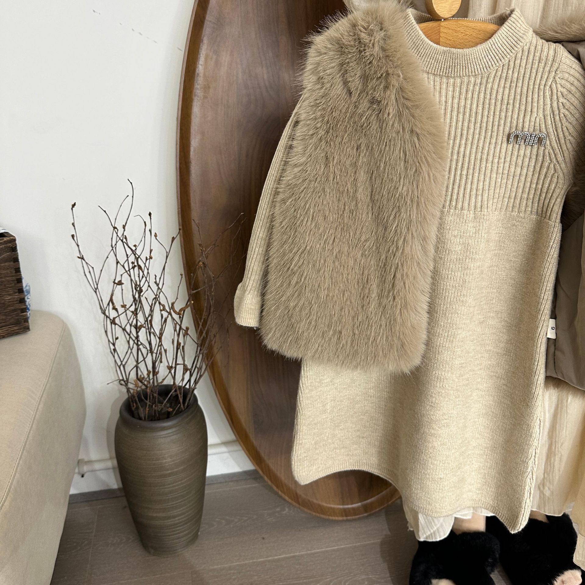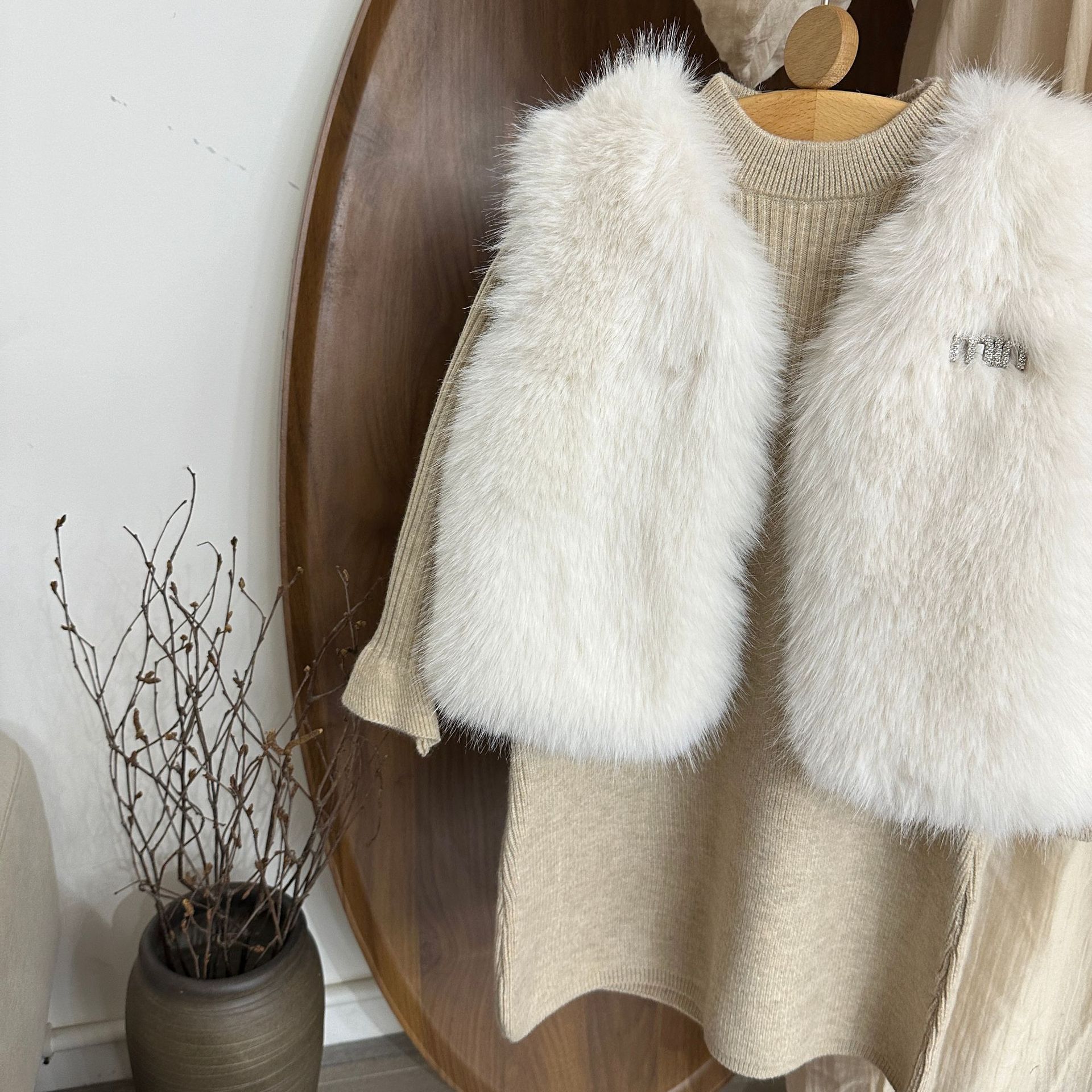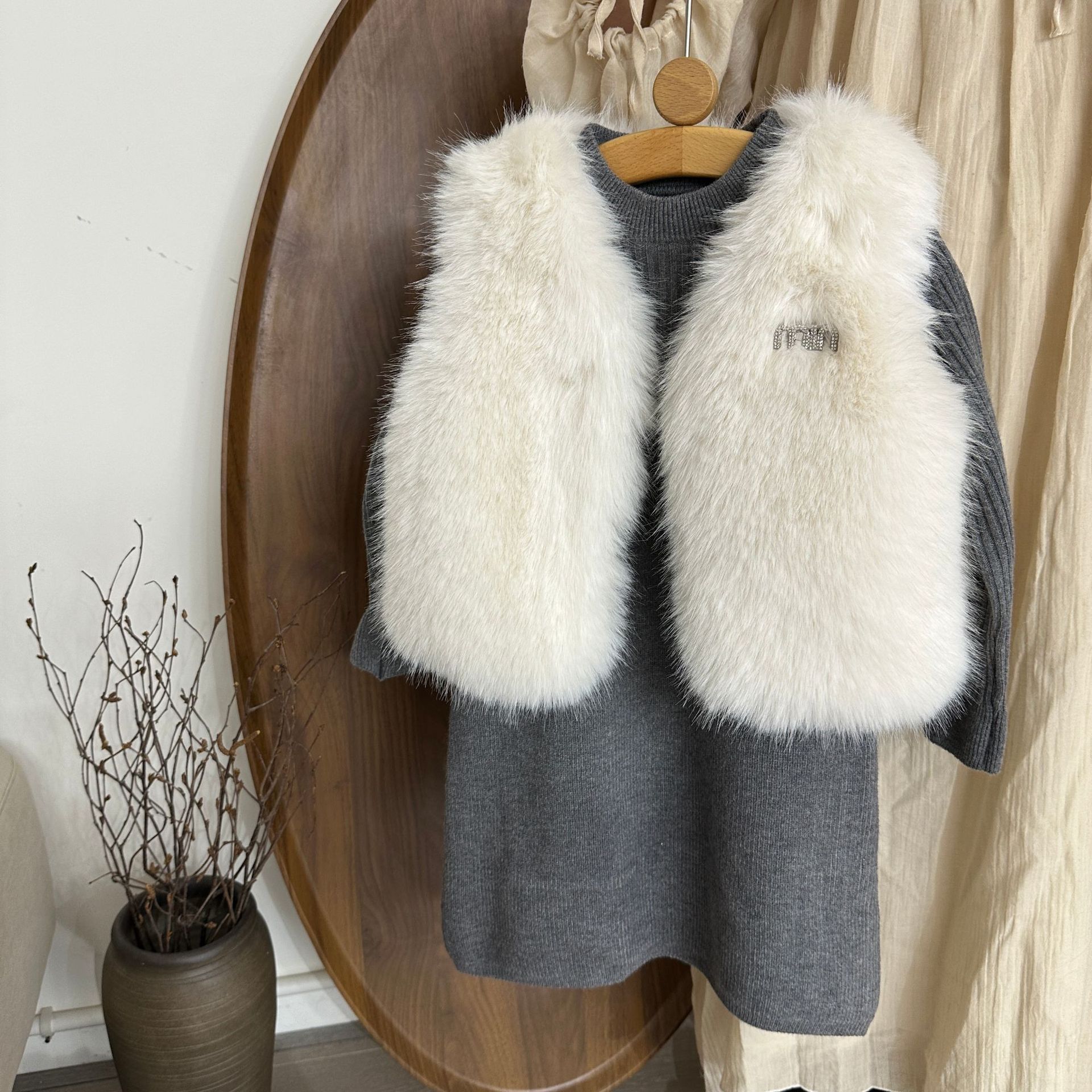 여자 모피 조끼 25 가을, 겨울 새 아기 한국어 버전 솔리드 컬러 모피 조끼 스웨터 드레스 투피스 유행 세트스토어 가기