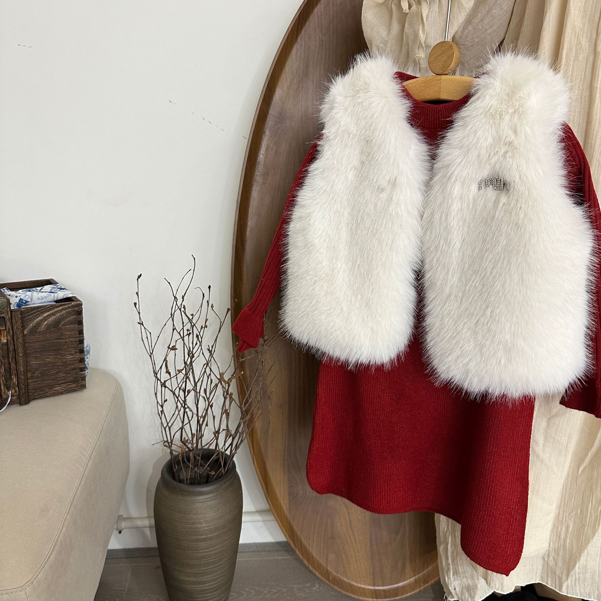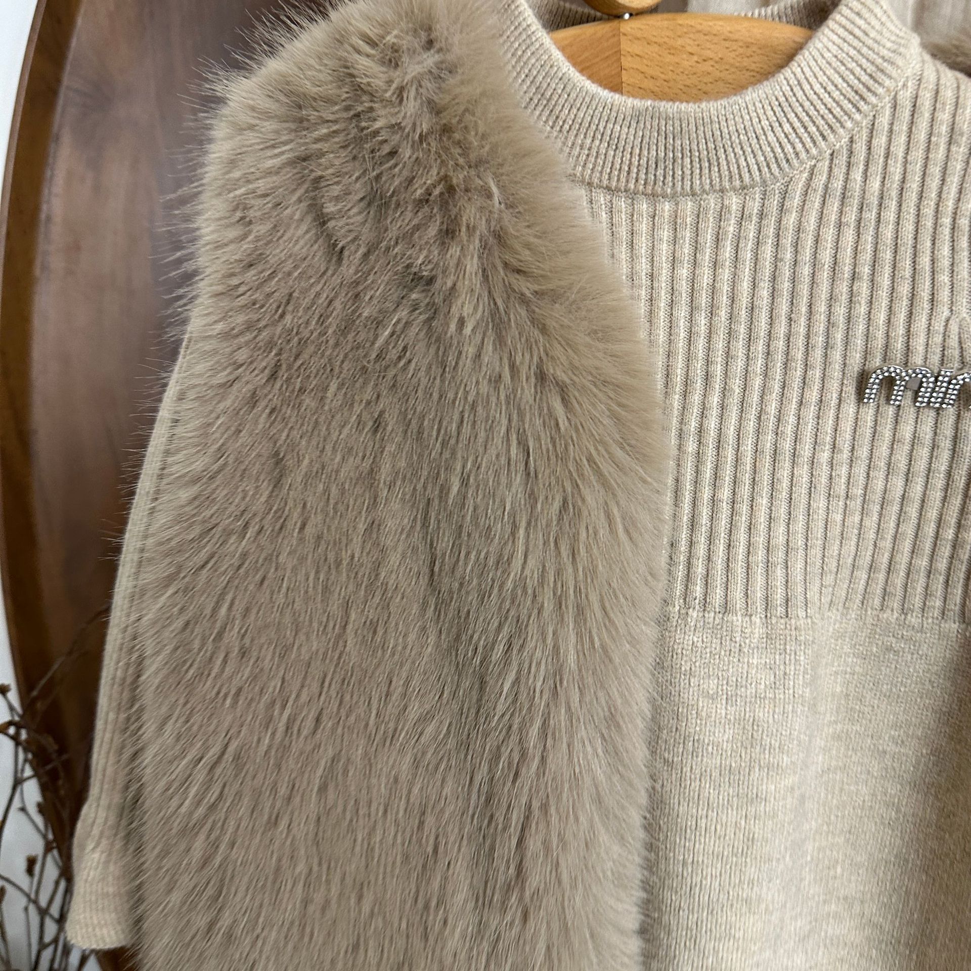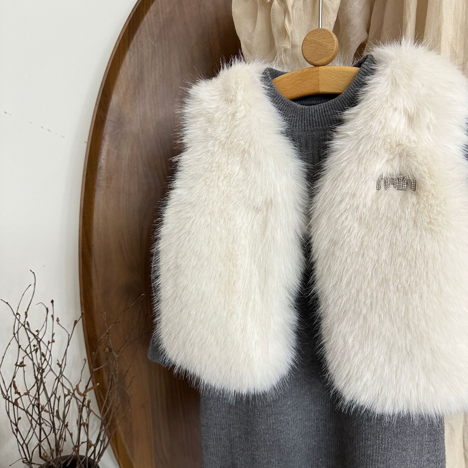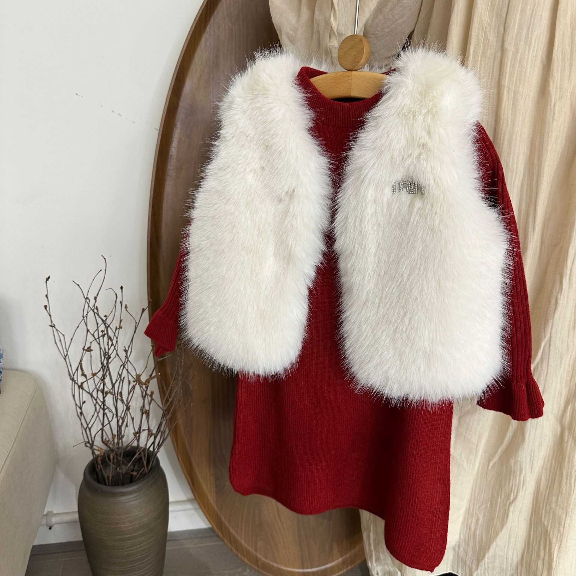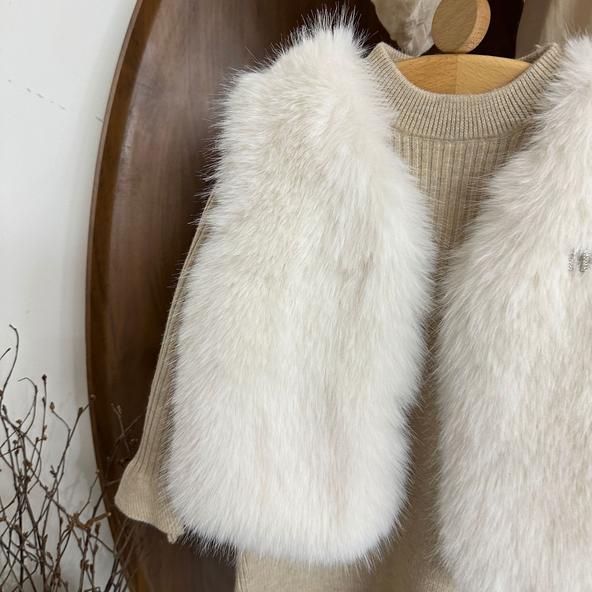 여자 모피 조끼 25 가을, 겨울 새 아기 한국어 버전 솔리드 컬러 모피 조끼 스웨터 드레스 투피스 유행 세트스토어 가기